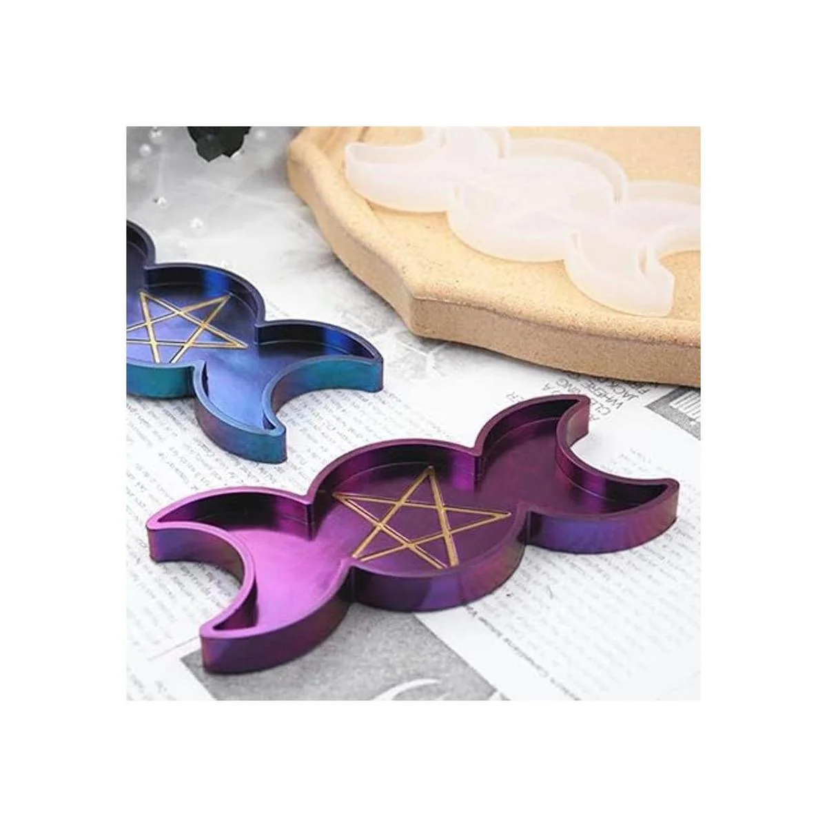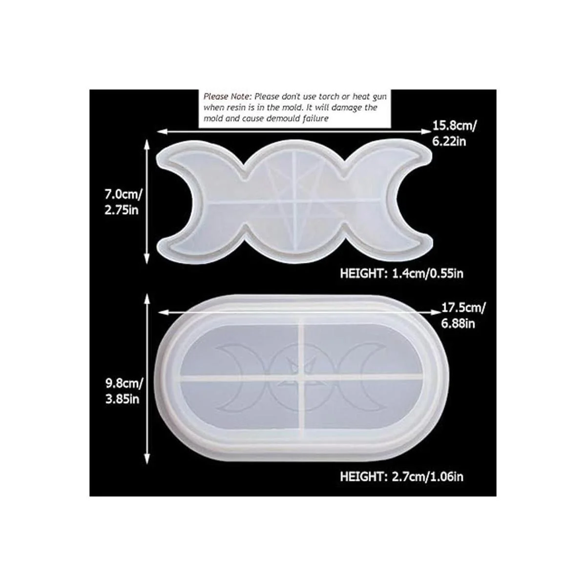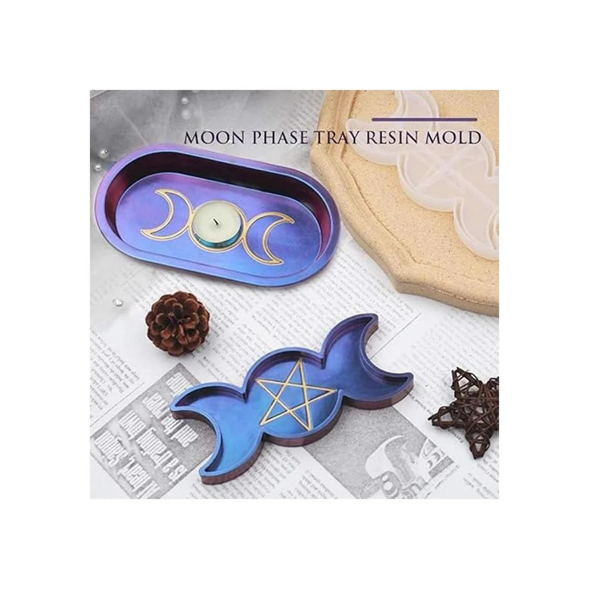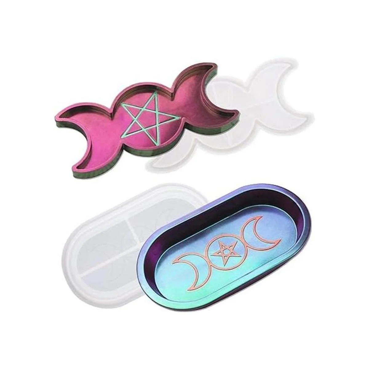 2 bandejas de luna y estrella, molde de resina de silicona, fase solar, luna, resina epoxi, portavelas, placa de almacenamiento de joyas, jabón, contenedor de baratija, hecho a mano, resina, manualidades, hogar, Dcor