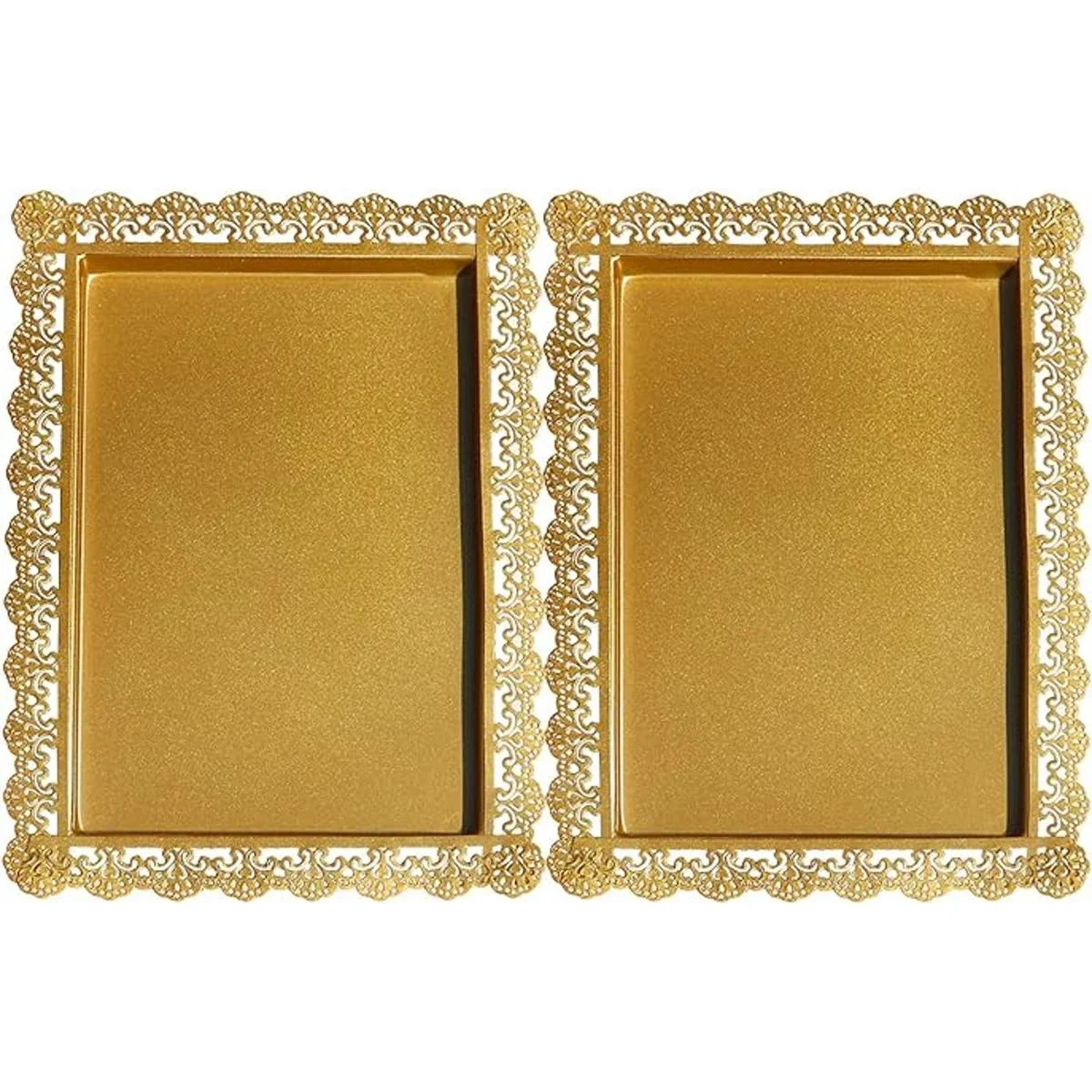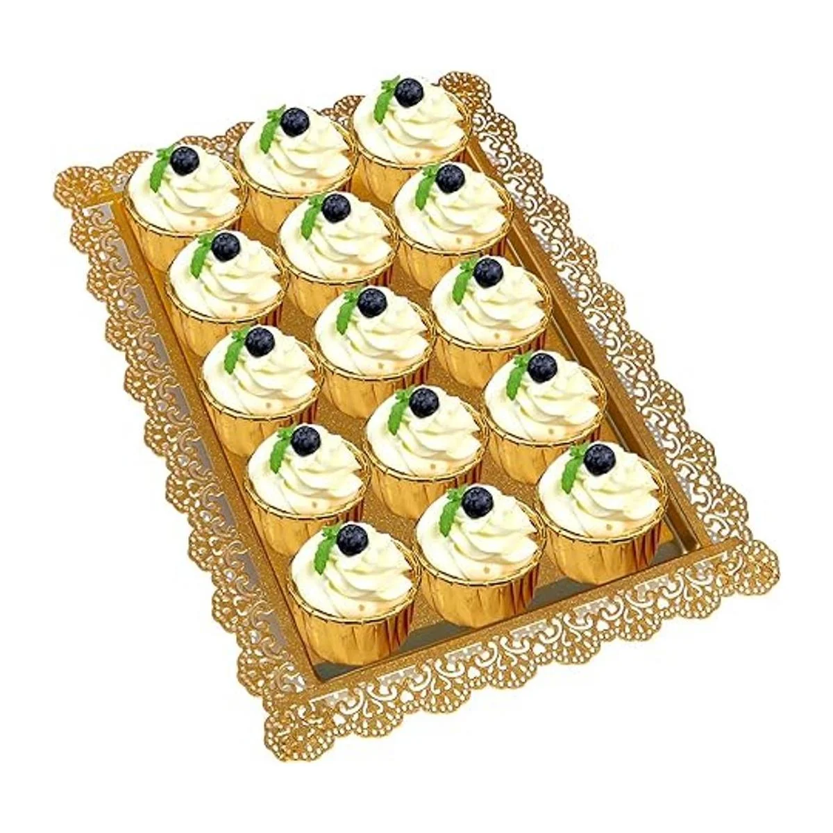 2 bandejas rectangulares de hierro para cupcakes, platos de postre de frutas para fiestas, aniversarios, bodas, Navidad, baby shower dorado