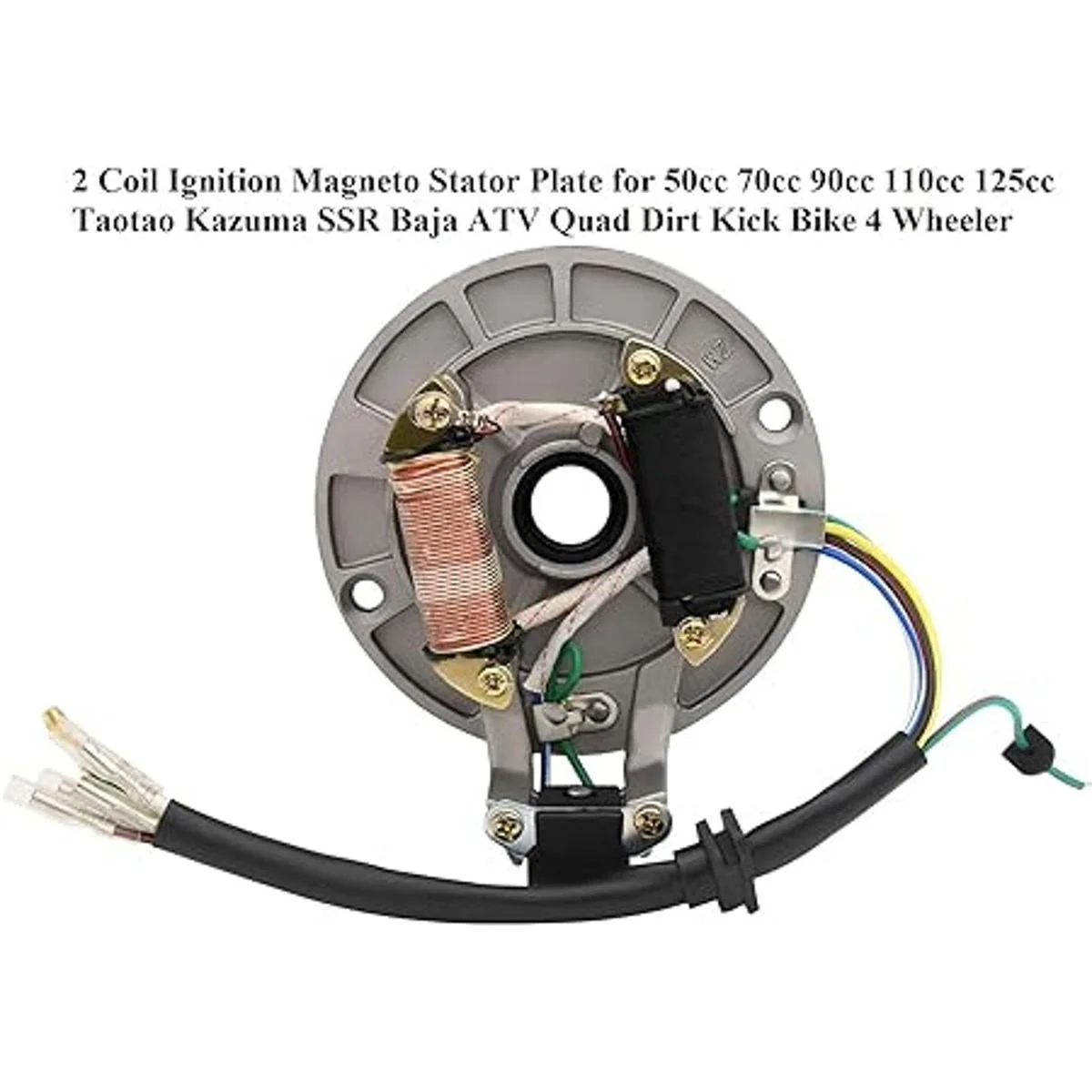 2 bobinas de encendido Magneto estator placa para 50 70 90 110 125cc Taotao Kazuma SSR Baja ATV Quad Dirt Kick Bike 4 Wheeler,Magneto volante extractor para Yamaha Honda Kawasaki Suzuki Scooter Dirt Bike