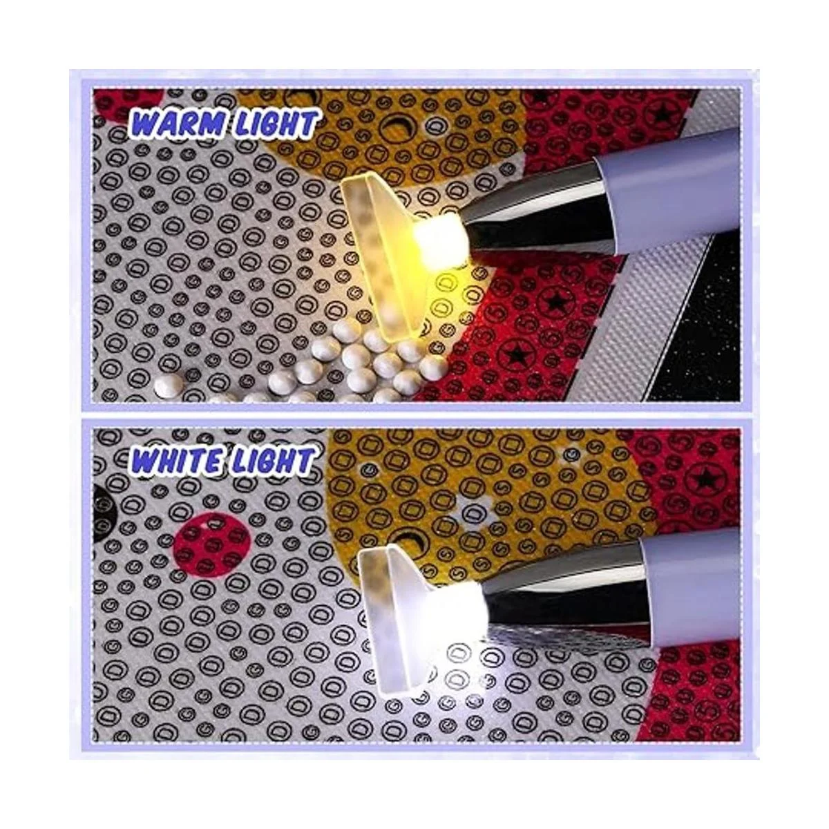 2 modos de iluminación: nuestros bolígrafos LED de pintura de diamantes están diseñados con 2 modos de iluminación, incluyendo luz blanca y luz cálida, puedes pulsar el interruptor para cambiar el modo deseado, lo que puede satisfacer tus necesidades de iluminación en diferentes entornos