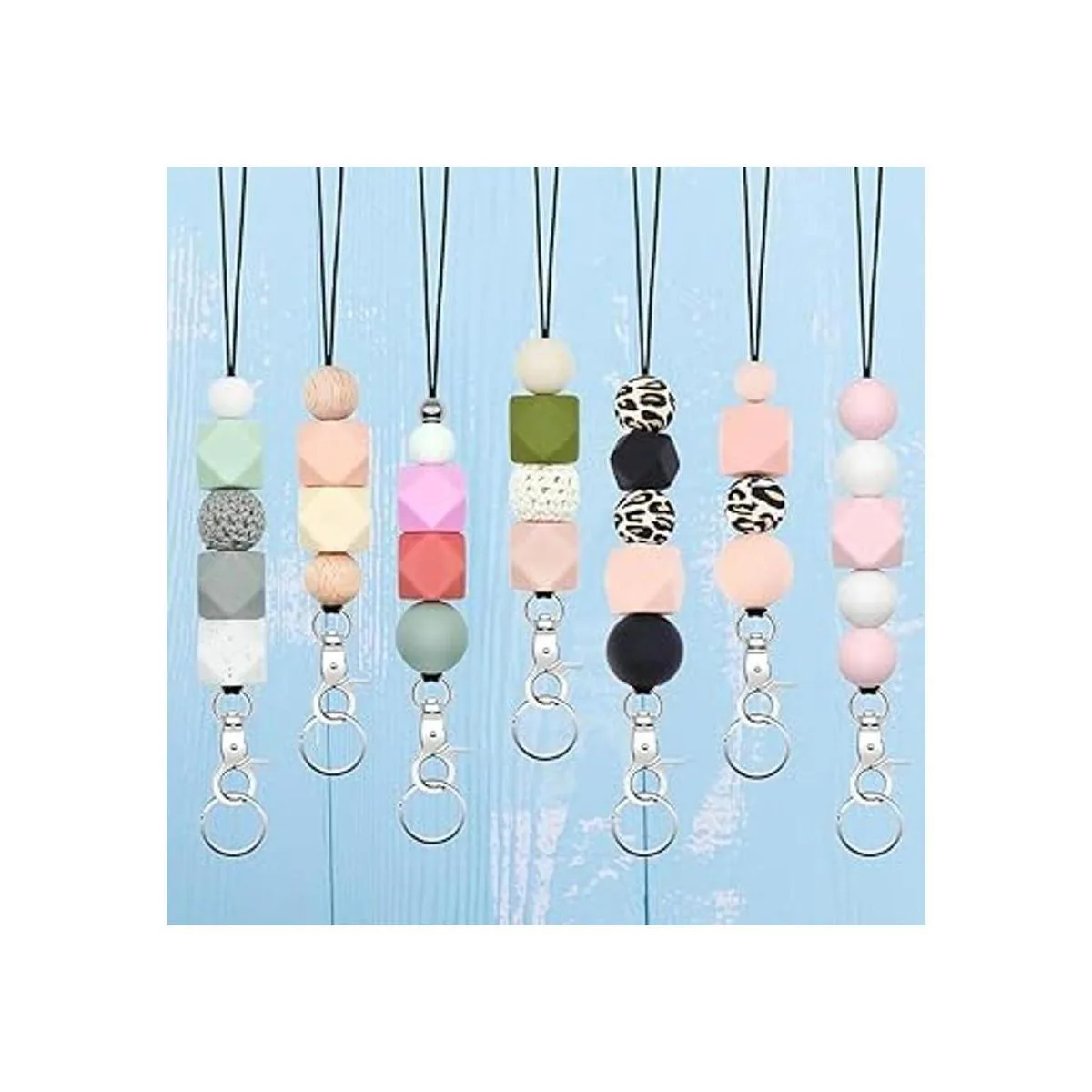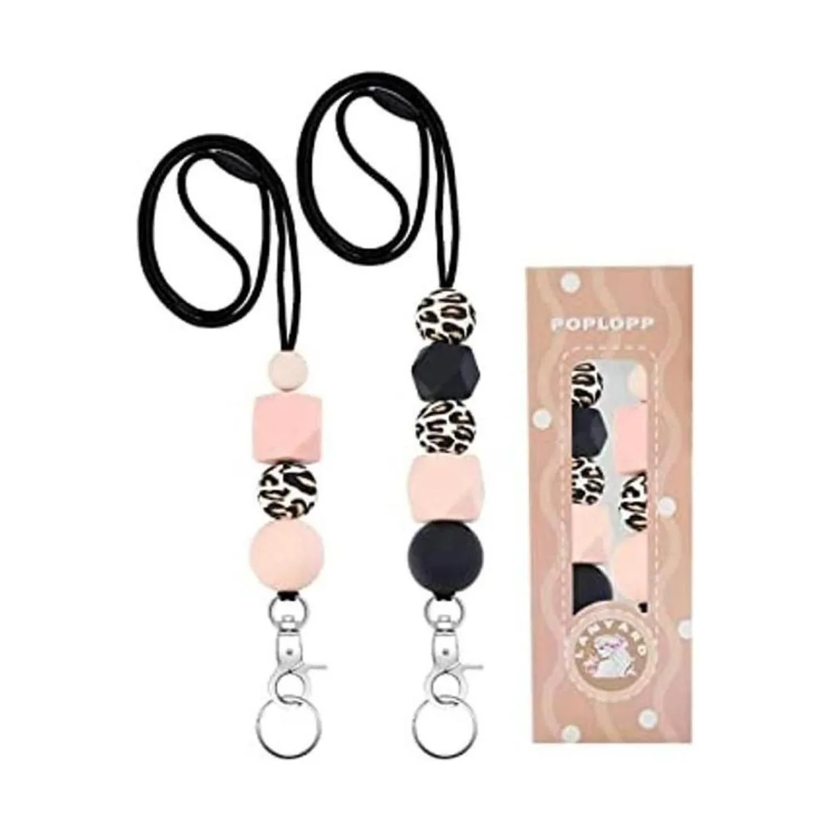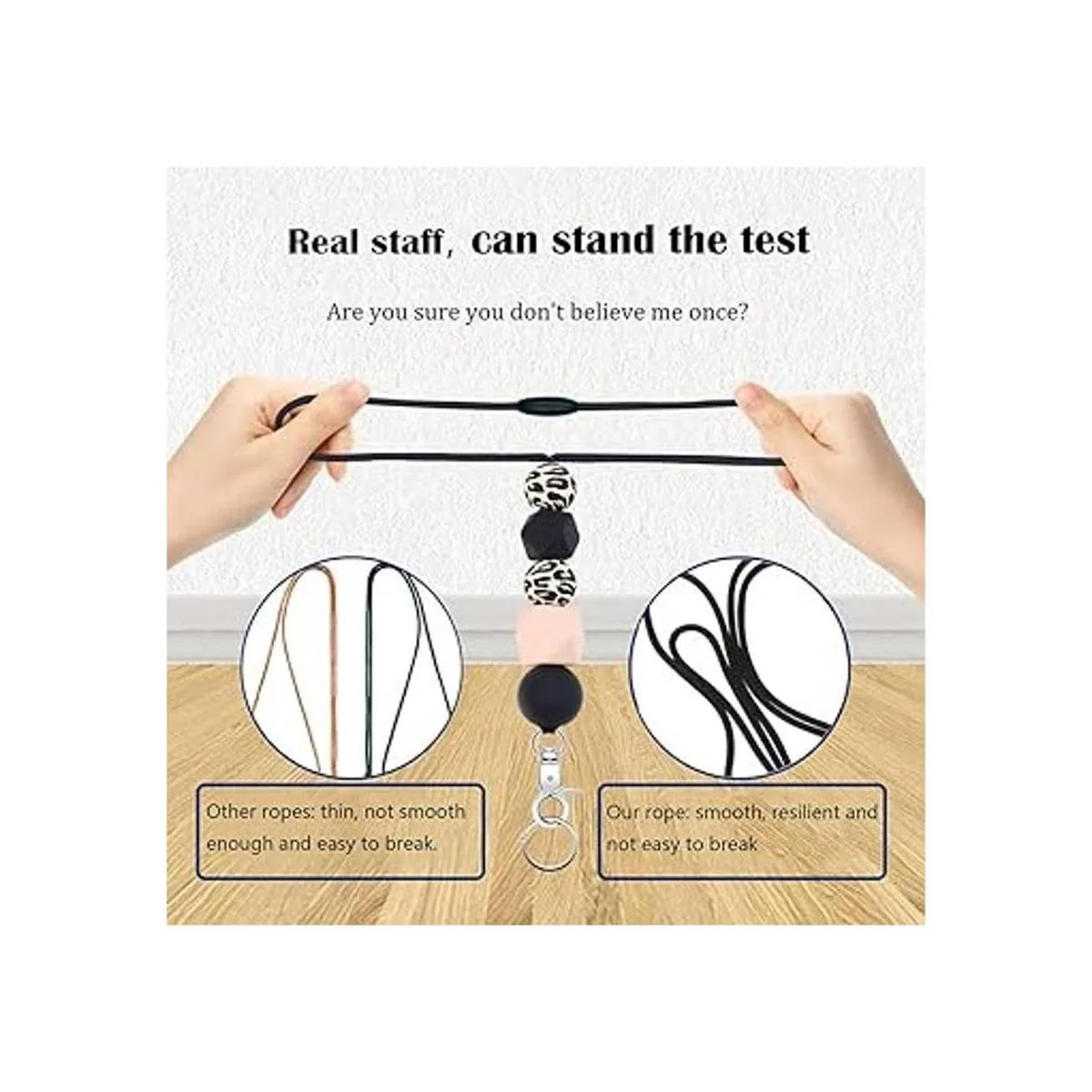 2 bonitos cordones para insignias de identificación y llaves para mujeres profesoras, cordón de silicona duradero con cuentas con llavero para enfermeras, estudiantes, empleados, trabajadores de oficina
