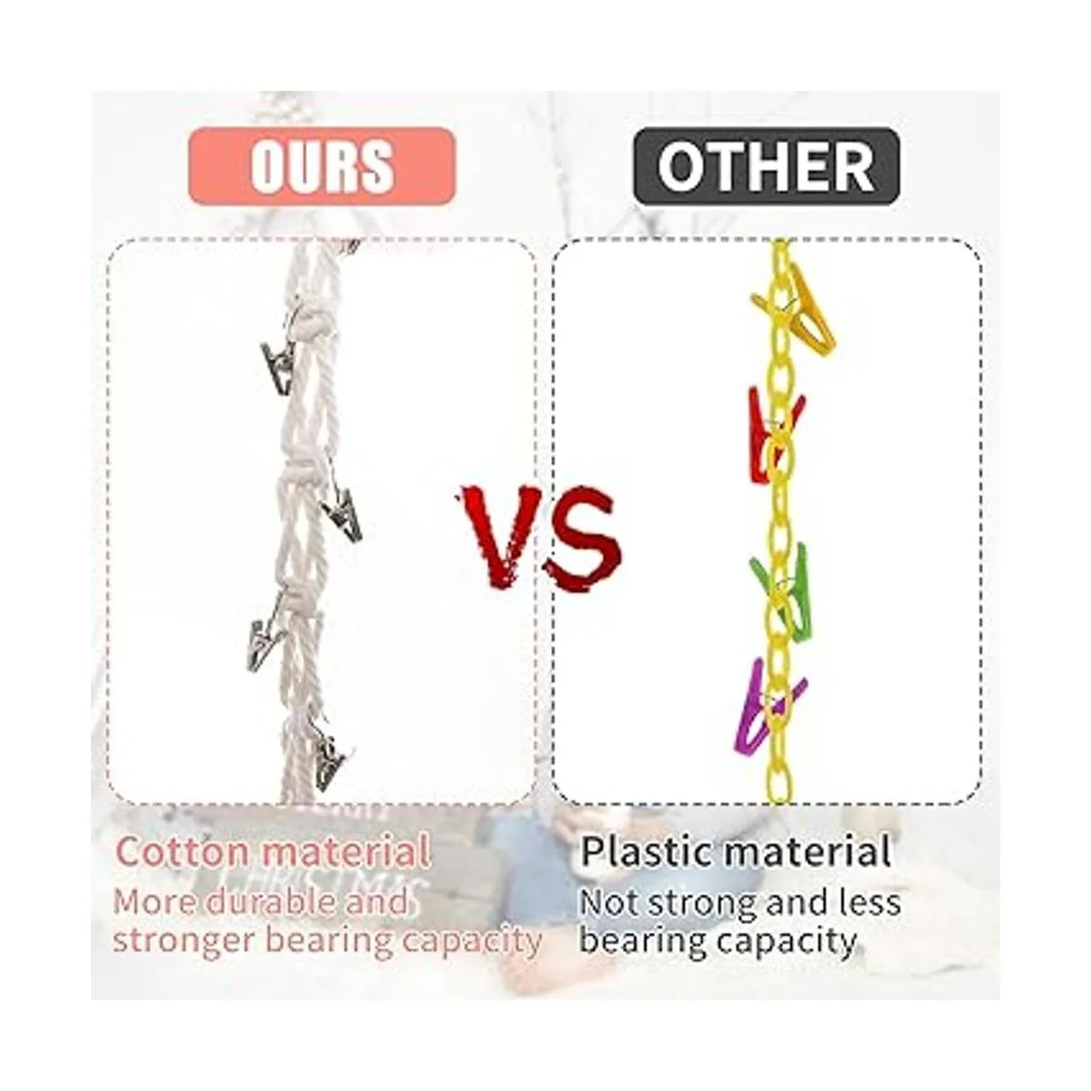 Súper carga: nuestra cadena colgante de animales de peluche está hecha de cuerda de algodón gruesa y aro de madera, que es más fuerte y más duradera que el material plástico, no se rompe ni se deforma. Y los clips y ganchos están hechos de acero inoxidable, con fuerte capacidad de carga y durabilidad, puede sostener tus juguetes de peluche durante mucho tiempo.