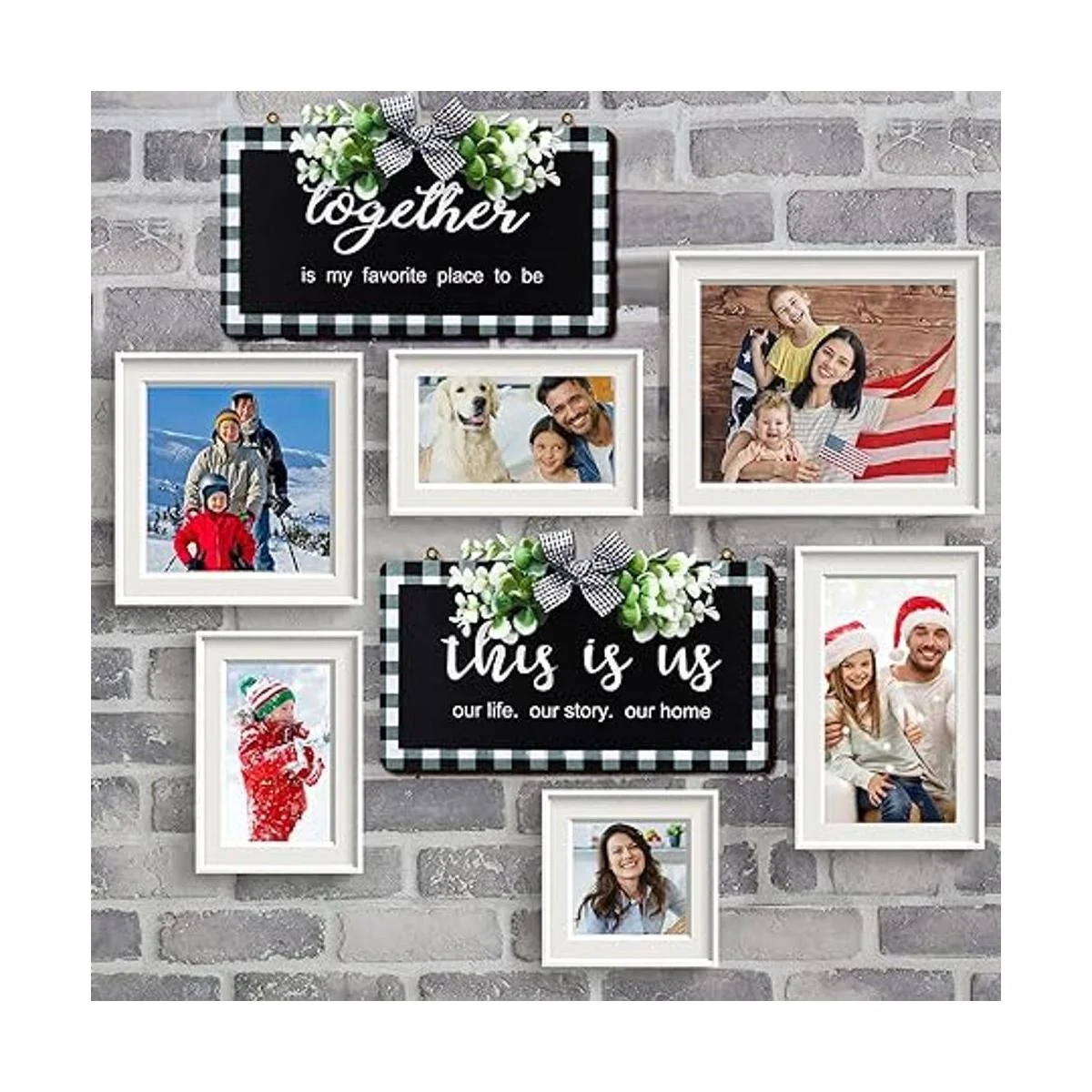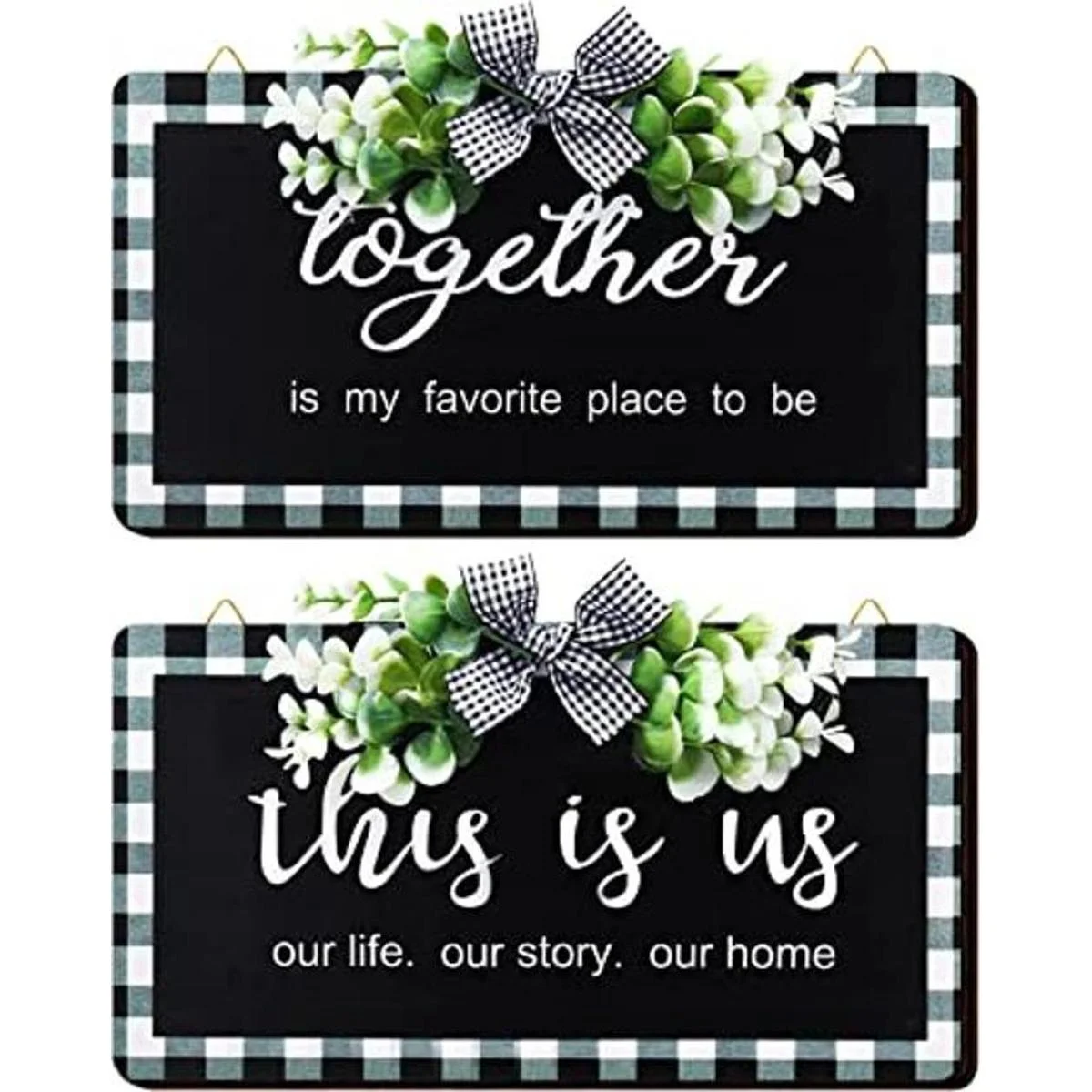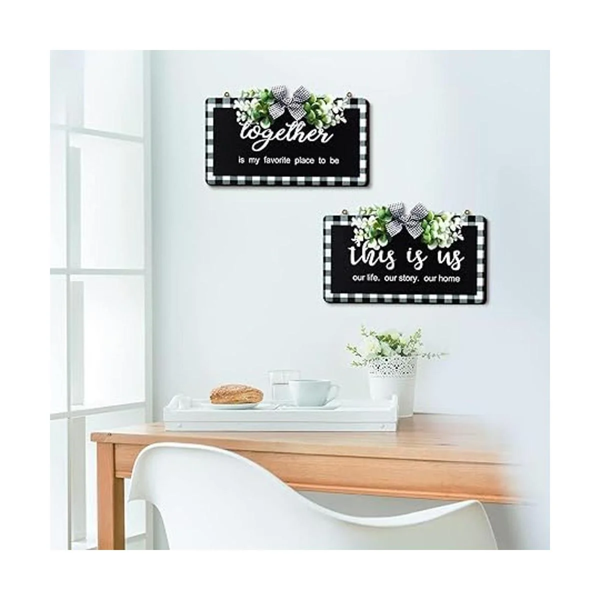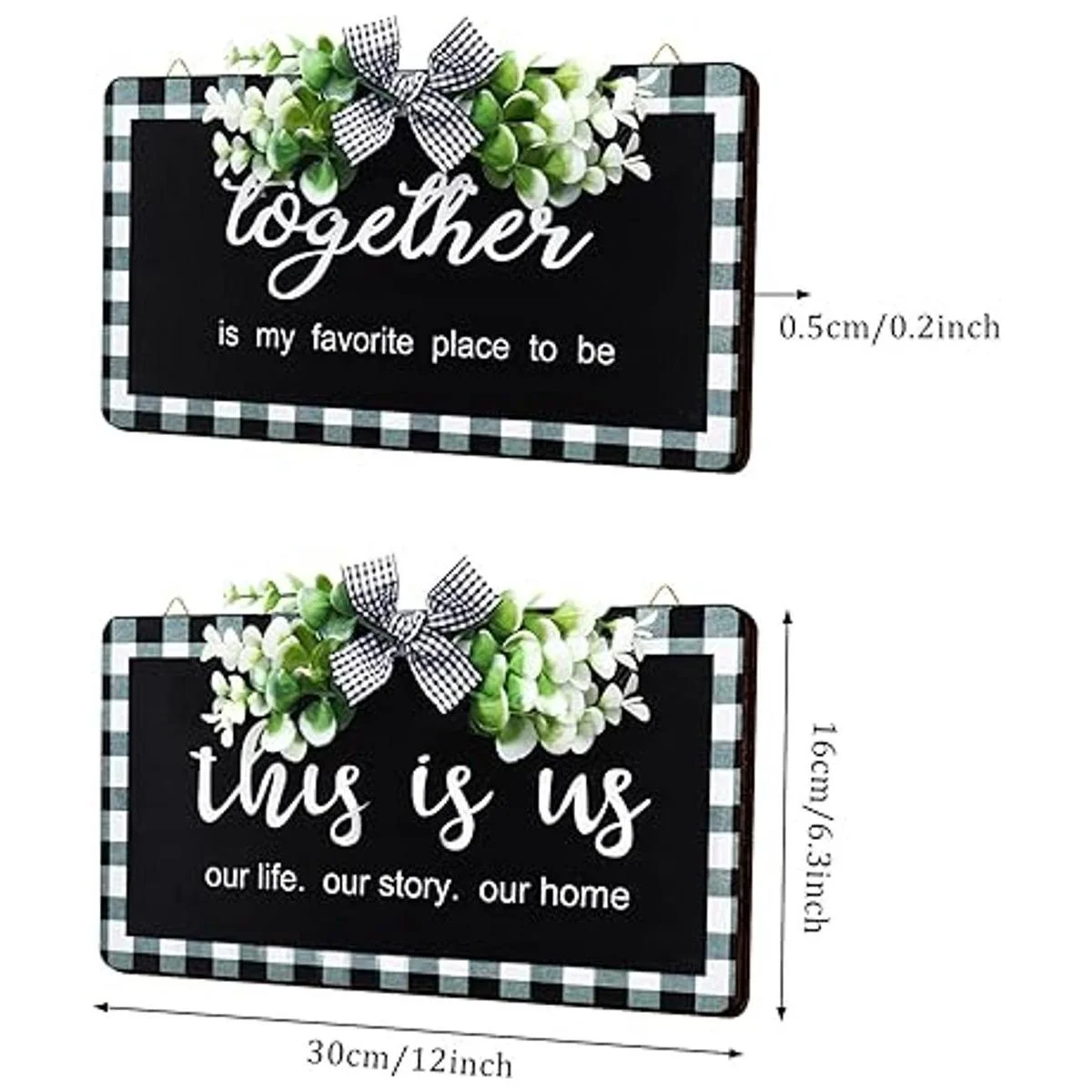2 carteles de madera a cuadros de búfalo para decoración de pared de 6.3 x 12 pulgadas, carteles rústicos a cuadros de búfalo en blanco y negro, decoración vintage para el hogar, comedor, restaurante This is Us Our Life Our Story Together