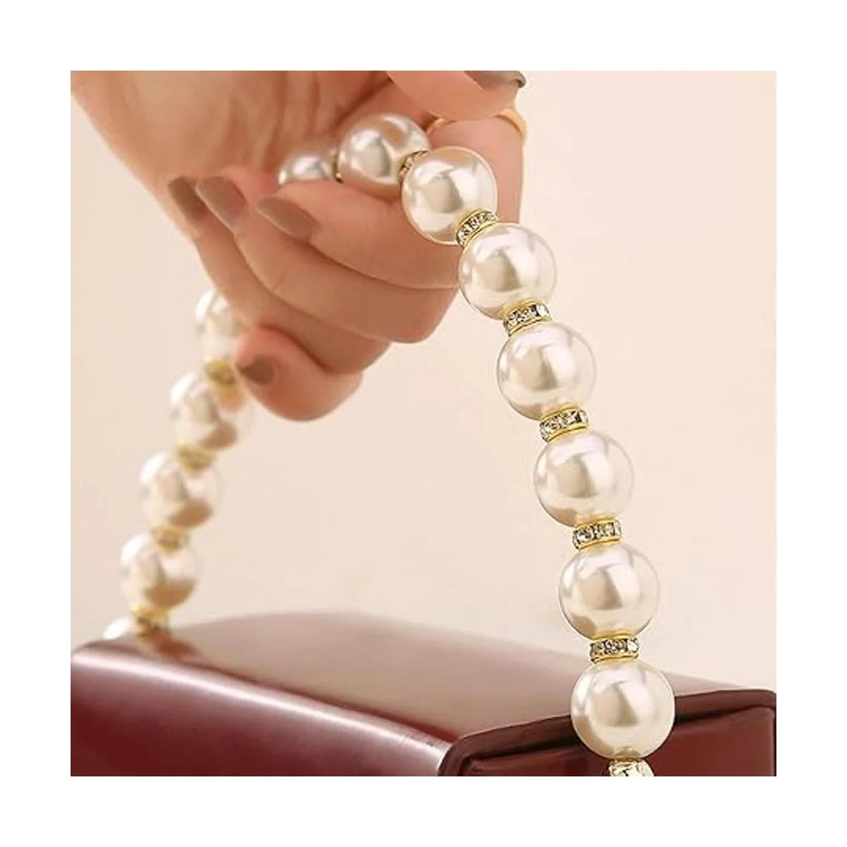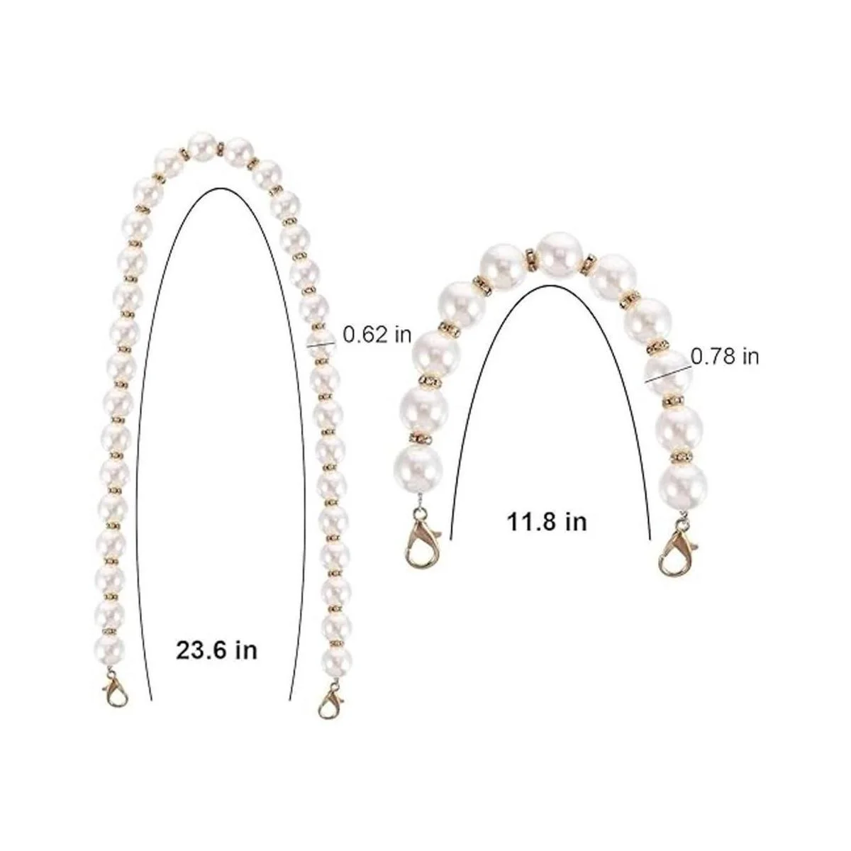2 correas de repuesto redondas de perlas de imitación grandes para manualidades, accesorios de bolsa, cadena corta, correas de hombro largas con hebillas de metal