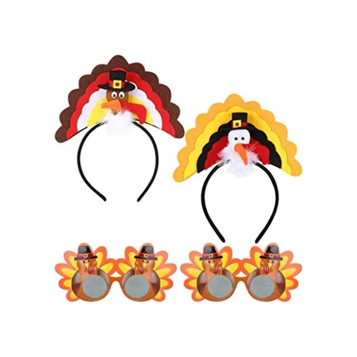 2 diademas de pavo de Acción de Gracias, 2 gafas de sol de Acción de Gracias, decoración de pavo para día de Acción de Gracias o fiesta.