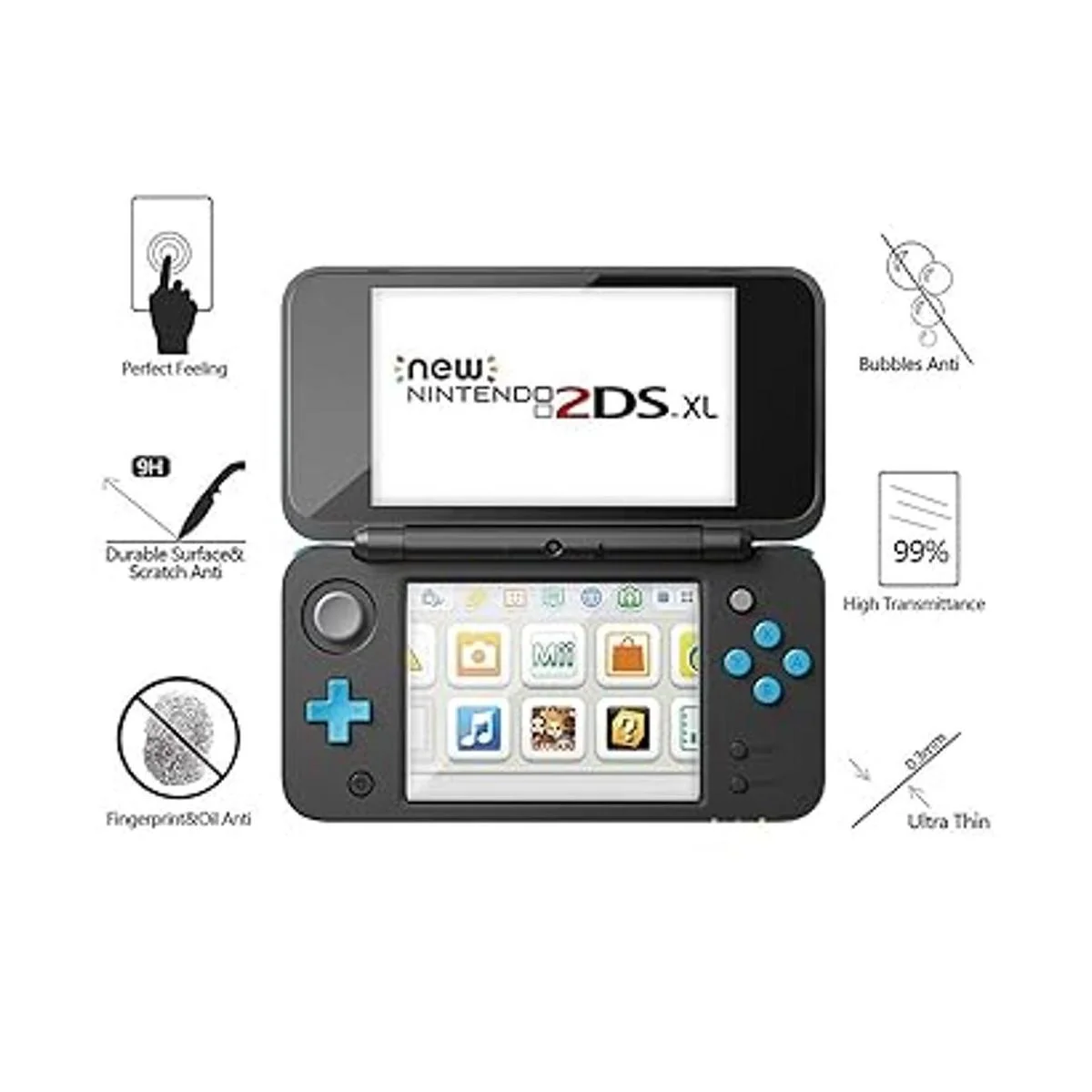 Mayor protección: extremadamente alta dureza, resiste arañazos hasta 9H vidrio templado con protección duradera para su nuevo Nintendo 2DS XL parte superior visualización LCD.