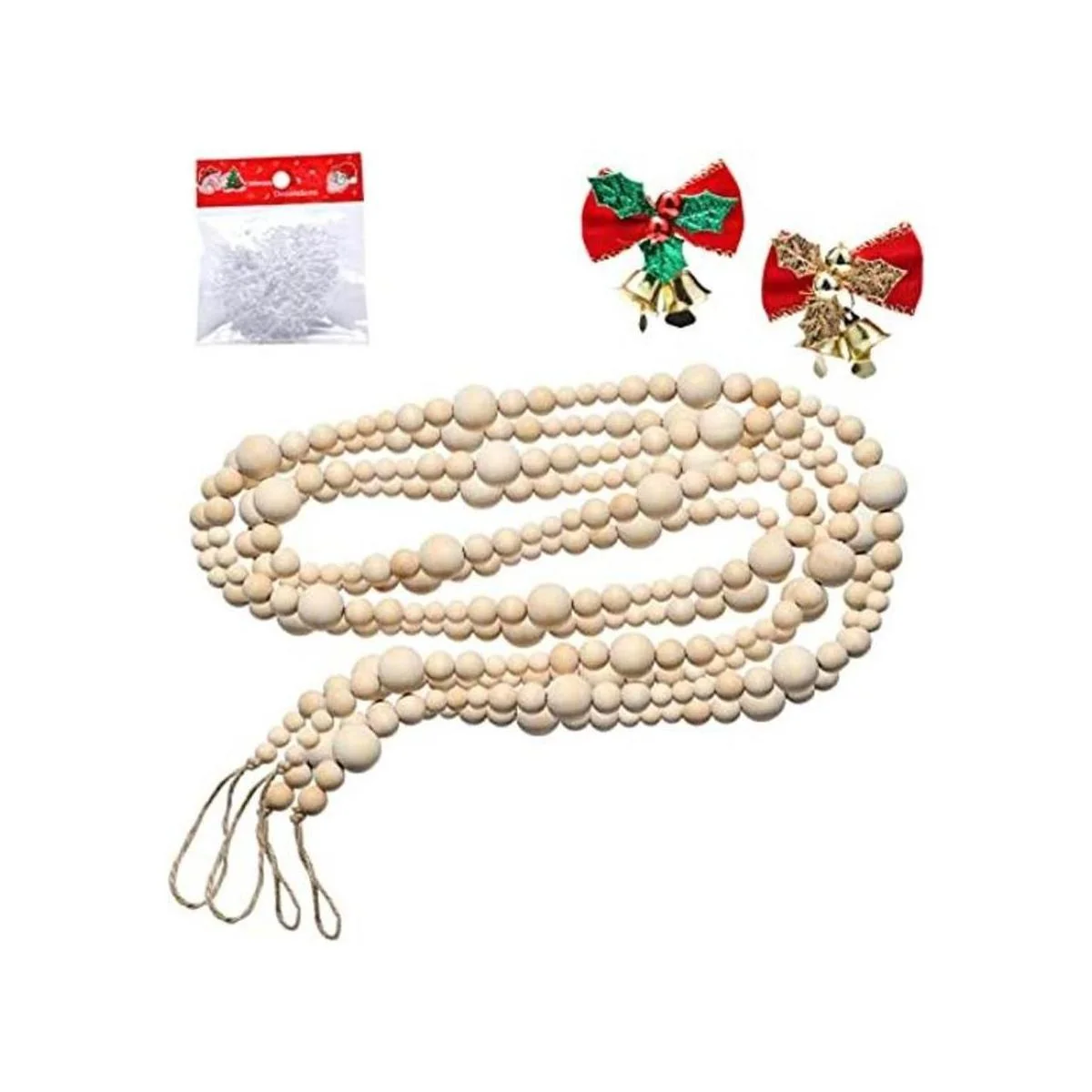 2 guirnaldas de cuentas de madera de Navidad de 86 pulgadas, guirnaldas de cuentas de madera creativas para decoración de Navidad, día de San Valentín, pared de granja, hogar, rústico, campo, decoración de vacaciones, cuentas de oración colgantes
