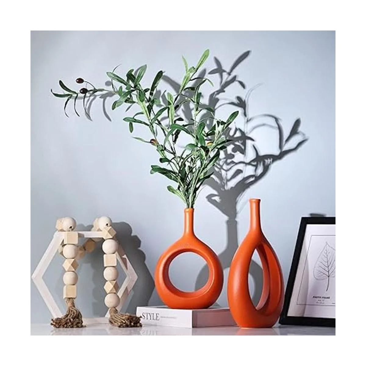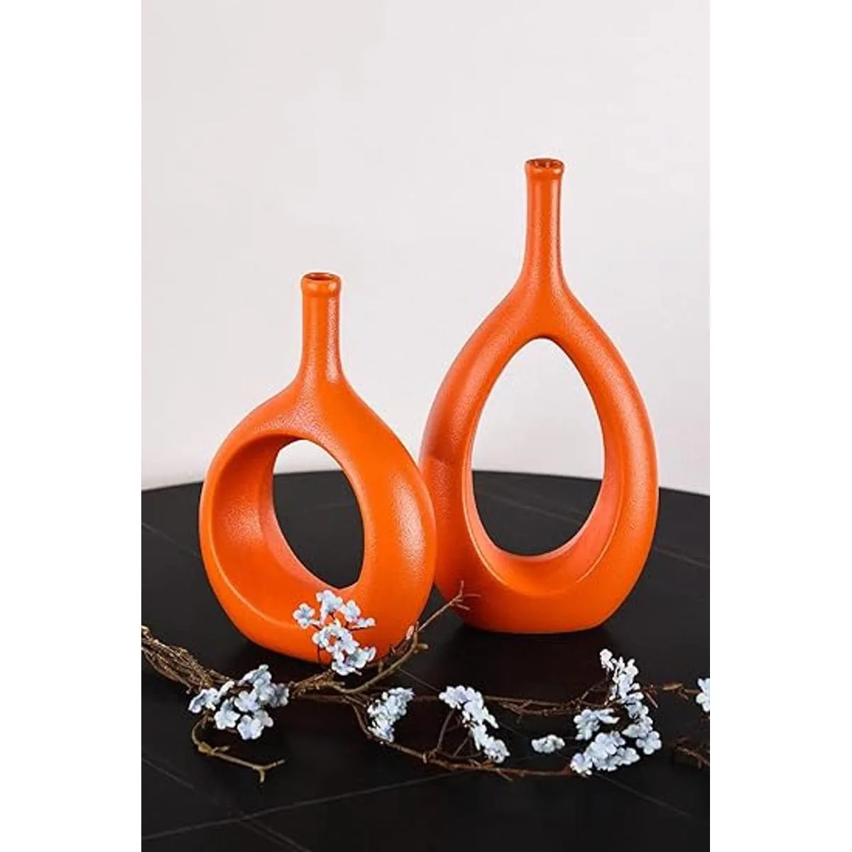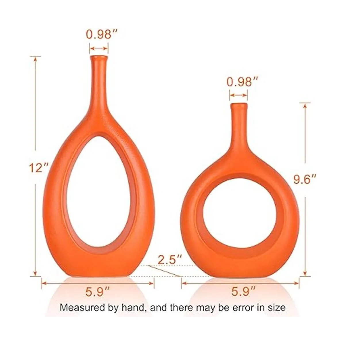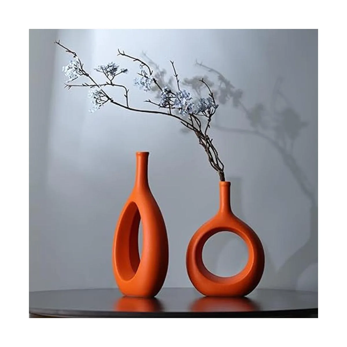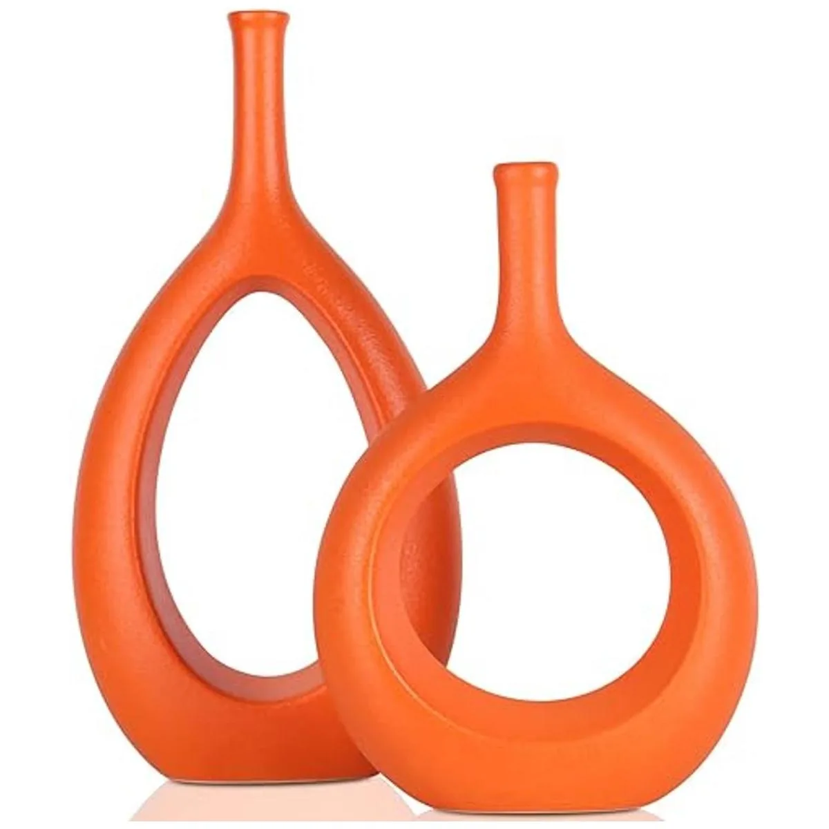 2 jarrón de cerámica, jarrón de flores hueco para decoración, jarrón decorativo moderno para decoración de flores, centros de mesa, granja, chimenea, sala de estar, dormitorio, oficina, mesa de comedor, jarrón naranja C