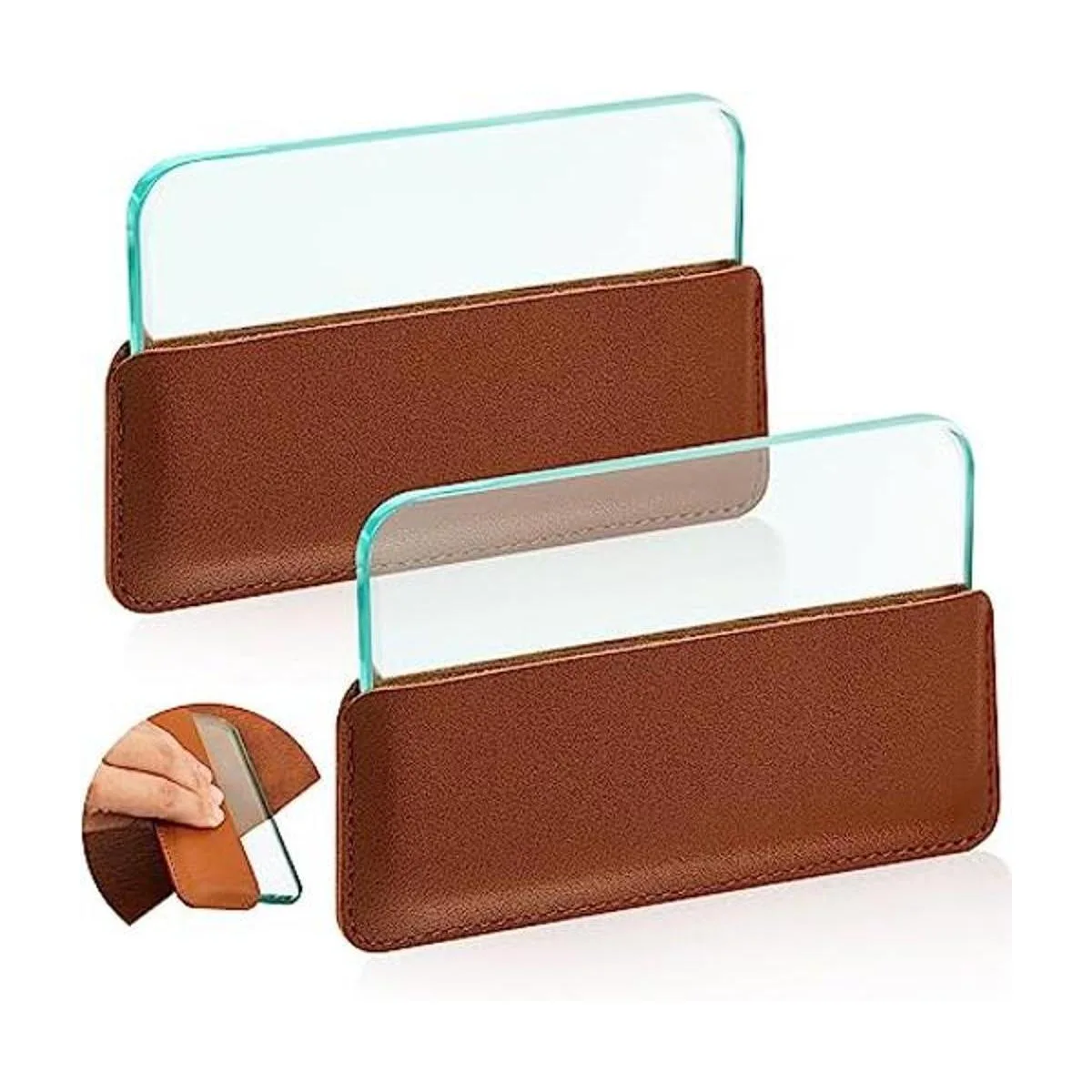 El paquete que puedes recibir: hay 2 piezas de cortapelos de vidrio y 2 piezas de asas de piel sintética, 4 piezas en total, suficientes para satisfacer tus demandas de proyectos de cuero; además, cada pulido de vidrio mide aproximadamente 4.72 x 2.75 pulgadas, cada mango de piel sintética es de aprox. 5.2 x 1.8 in, simple para su uso, transporte y almacenamiento