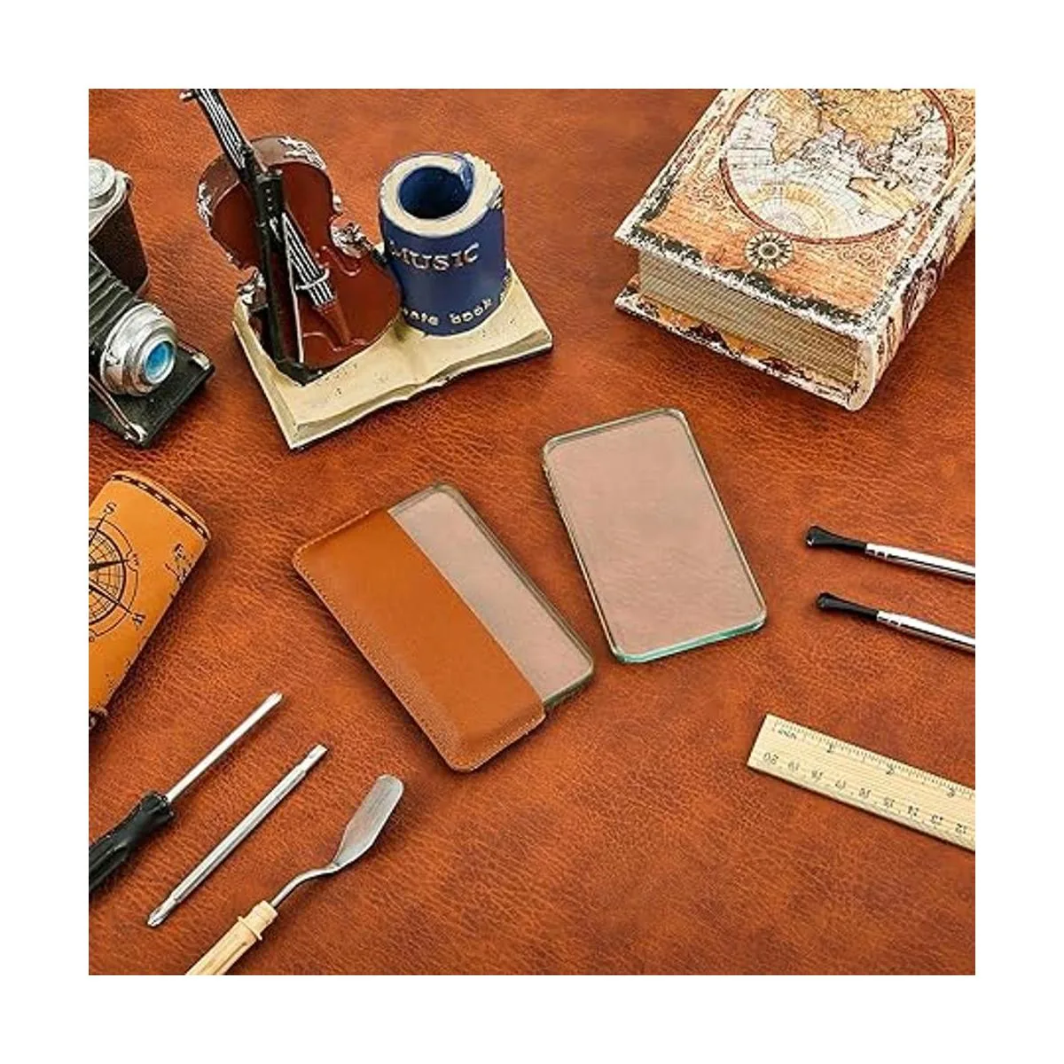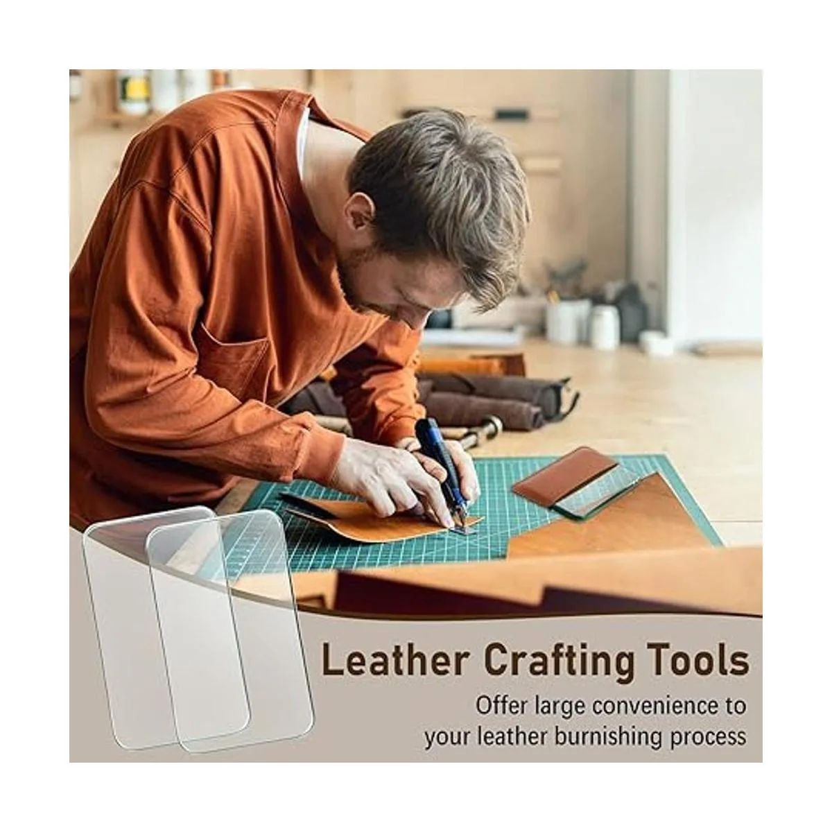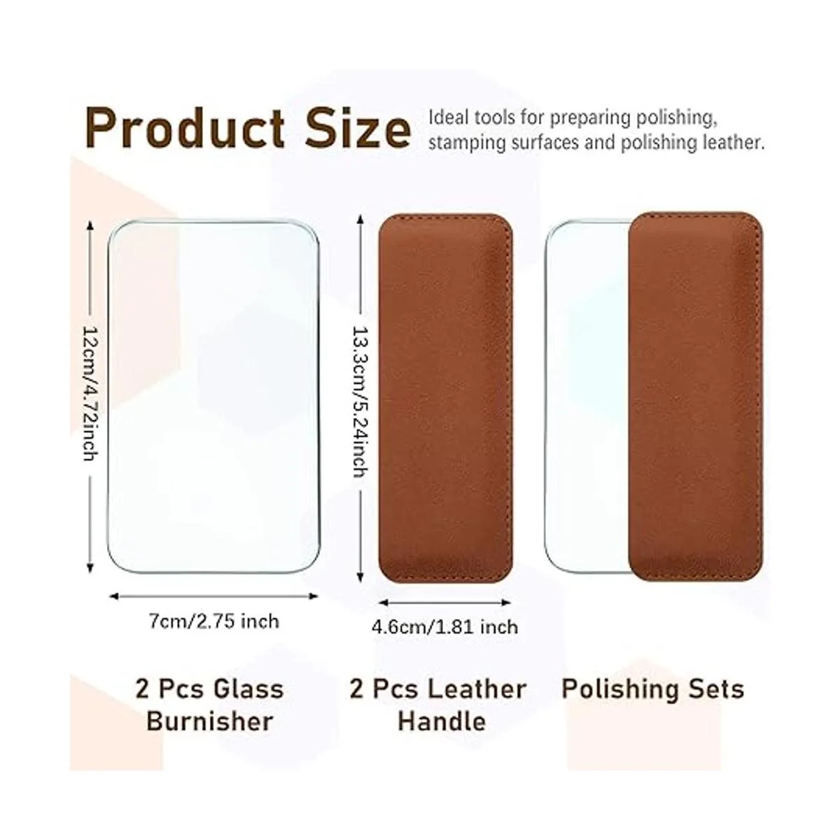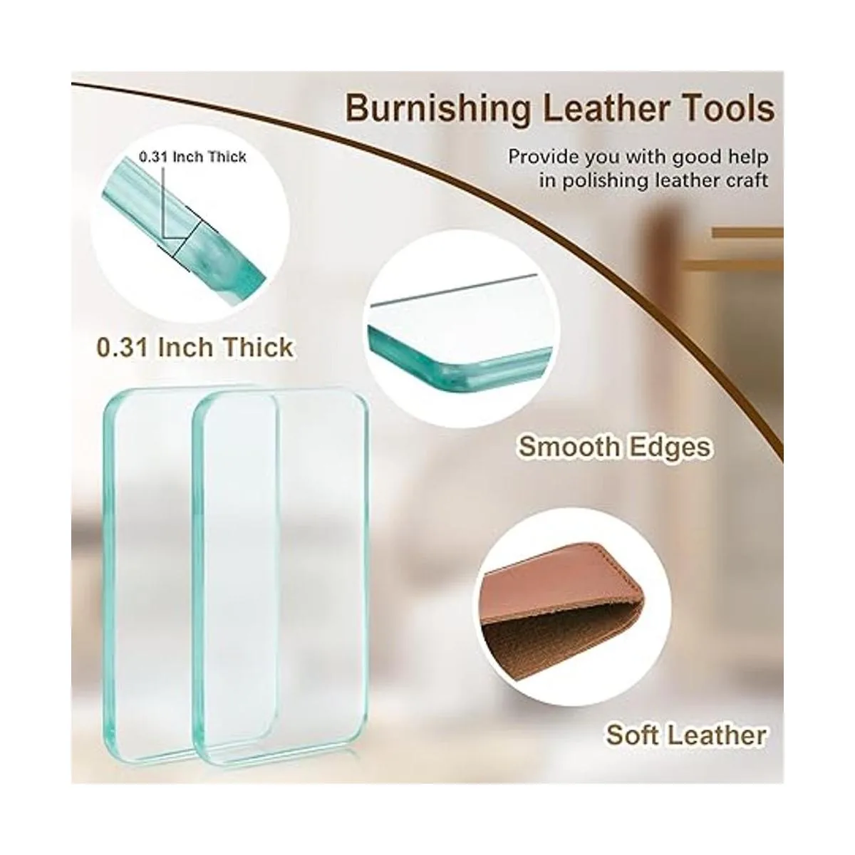 2 juegos de rebanadores de vidrio para pulir cuero pulido herramienta de pulido de cuero con mango de cuero sintético para bruñir cuero bloque de vidrio técnicas de suavizado de cuero