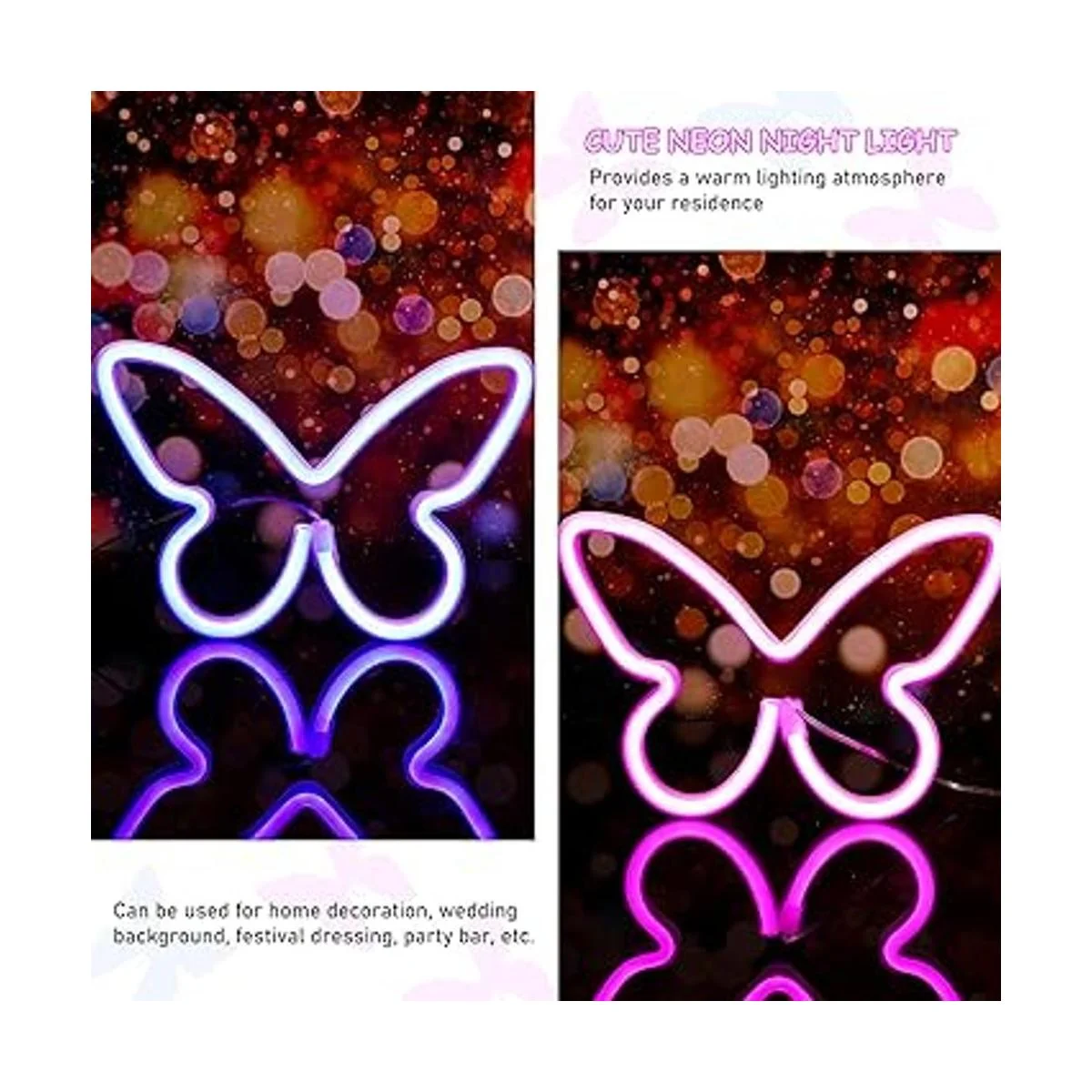 Elegante forma de mariposa: este letrero de neón claro está diseñado en forma de mariposa, muy bonito y encantador, que es la primera opción para decoración de interiores, añade una sensación de decoración a tu espacio y crea un ambiente tranquilo y romántico
