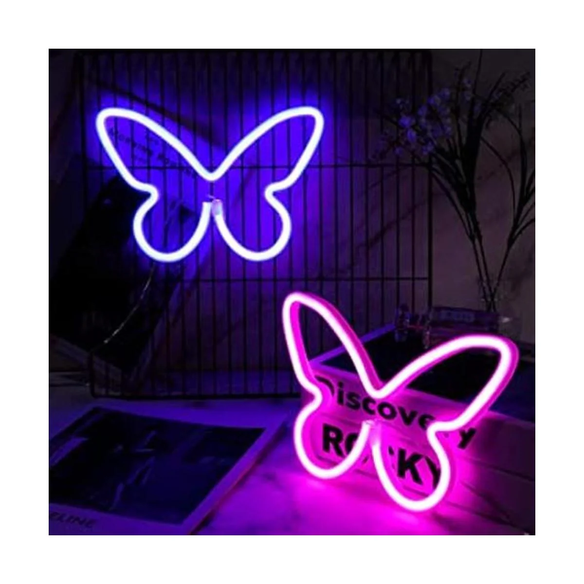 Dimensiones y paquete: cada letrero de pared de neón de mariposa mide aproximadamente 8.8 x 6.3 x 0.8 pulgadas, el tamaño adecuado es llamativo pero no ocupa demasiado espacio; recibirás 2 piezas de luz LED de neón de mariposa en diferentes colores, suficiente para tus necesidades de decoración