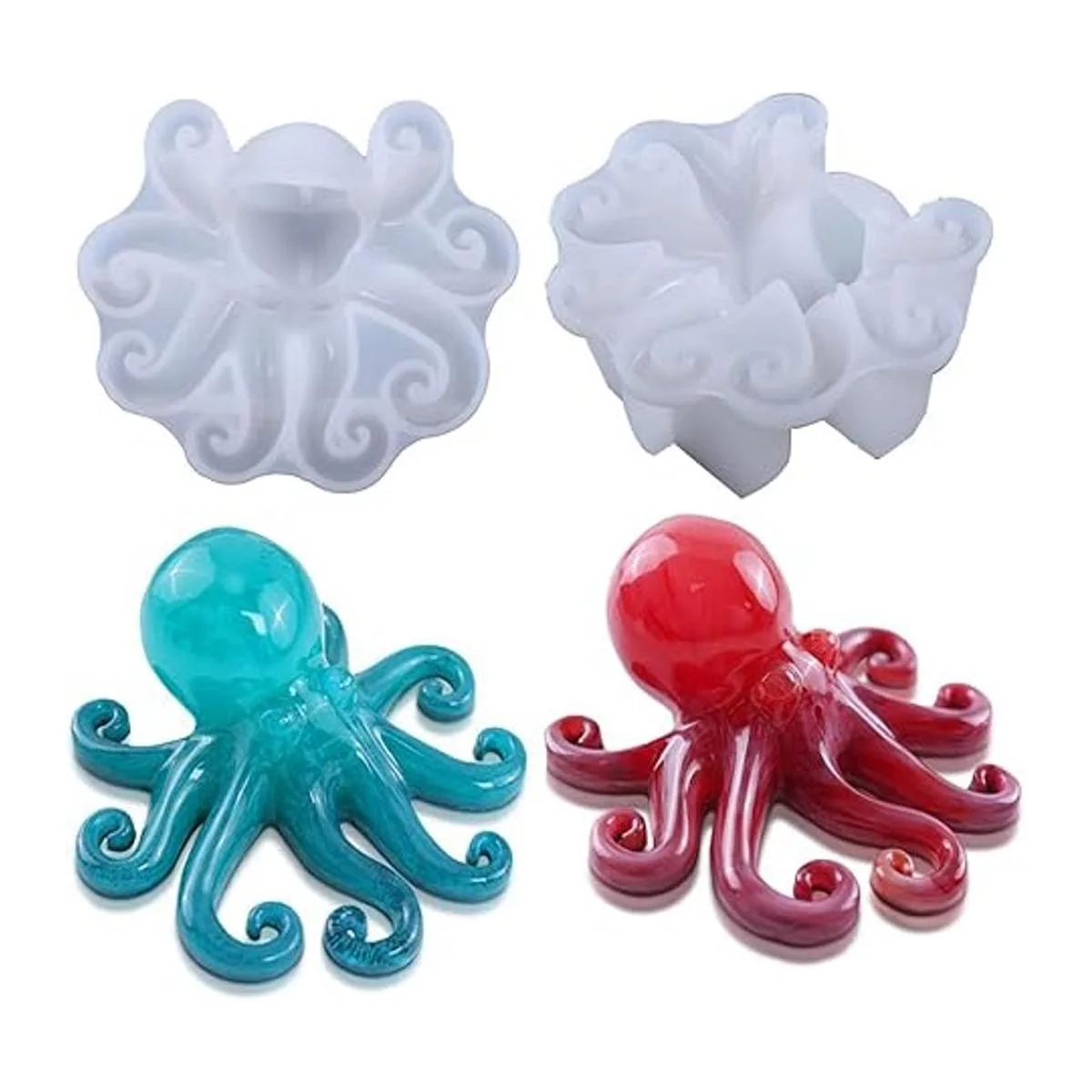 2 moldes de resina epoxi de pulpo, moldes de silicona para decoración de Halloween, forma de pulpo, moldes de resina de silicona marina de mar, manualidades, suministros de resina de adorno de Navidad