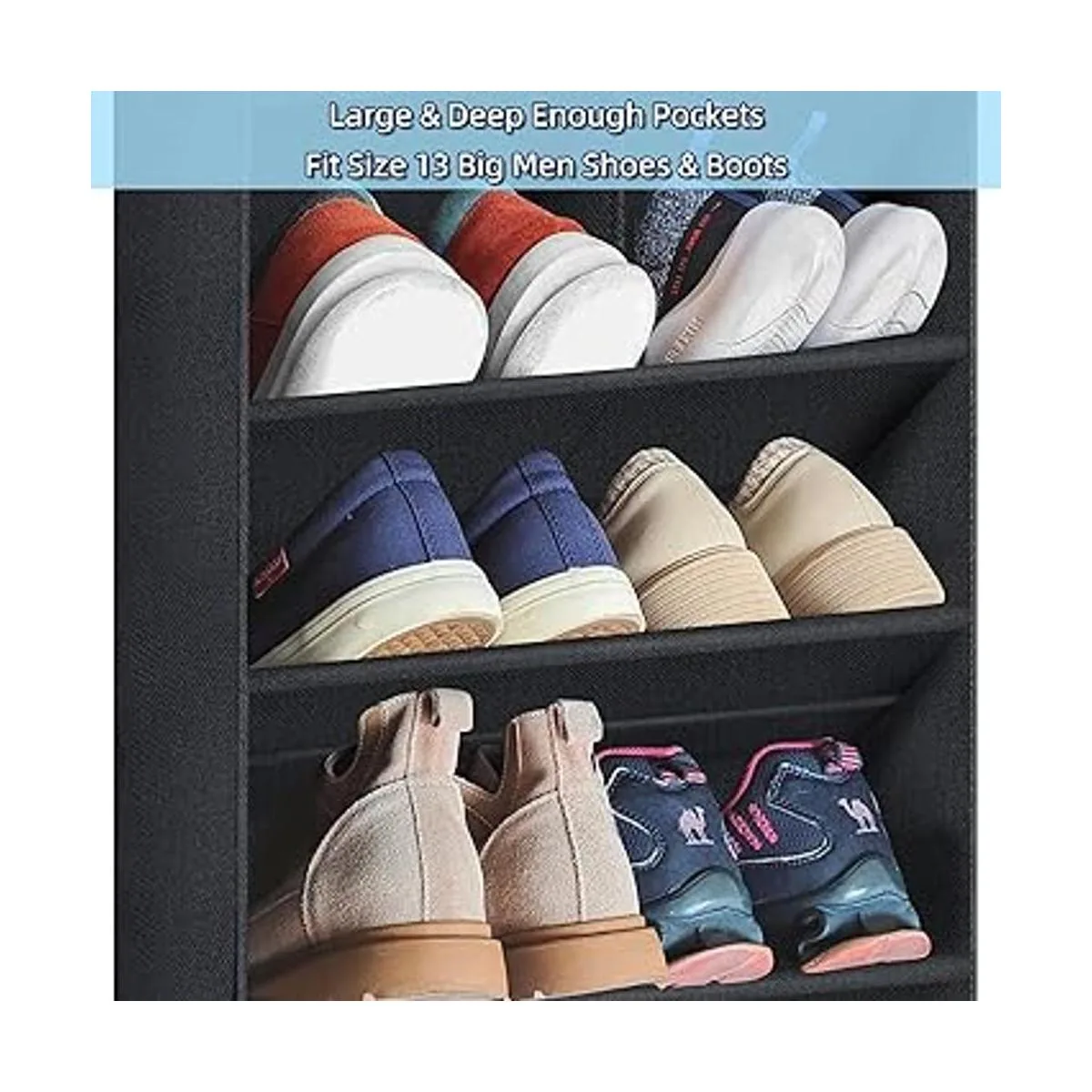 Sturdy and Durable Material: This hanging shoe organizer made of premium and thickened oxford fabric which much more durable and tear resistance than traditional nonwoven or mesh pockets. Each layer is supported by strong fiber tubes, aviod deformation and enhance the stability of the shoe holder which can hold up 45 lbs.
