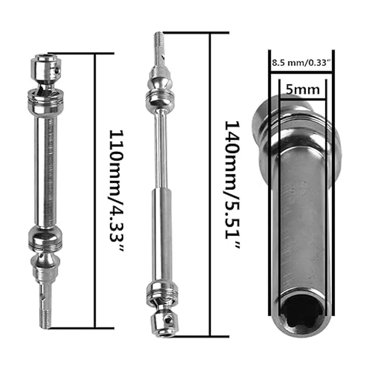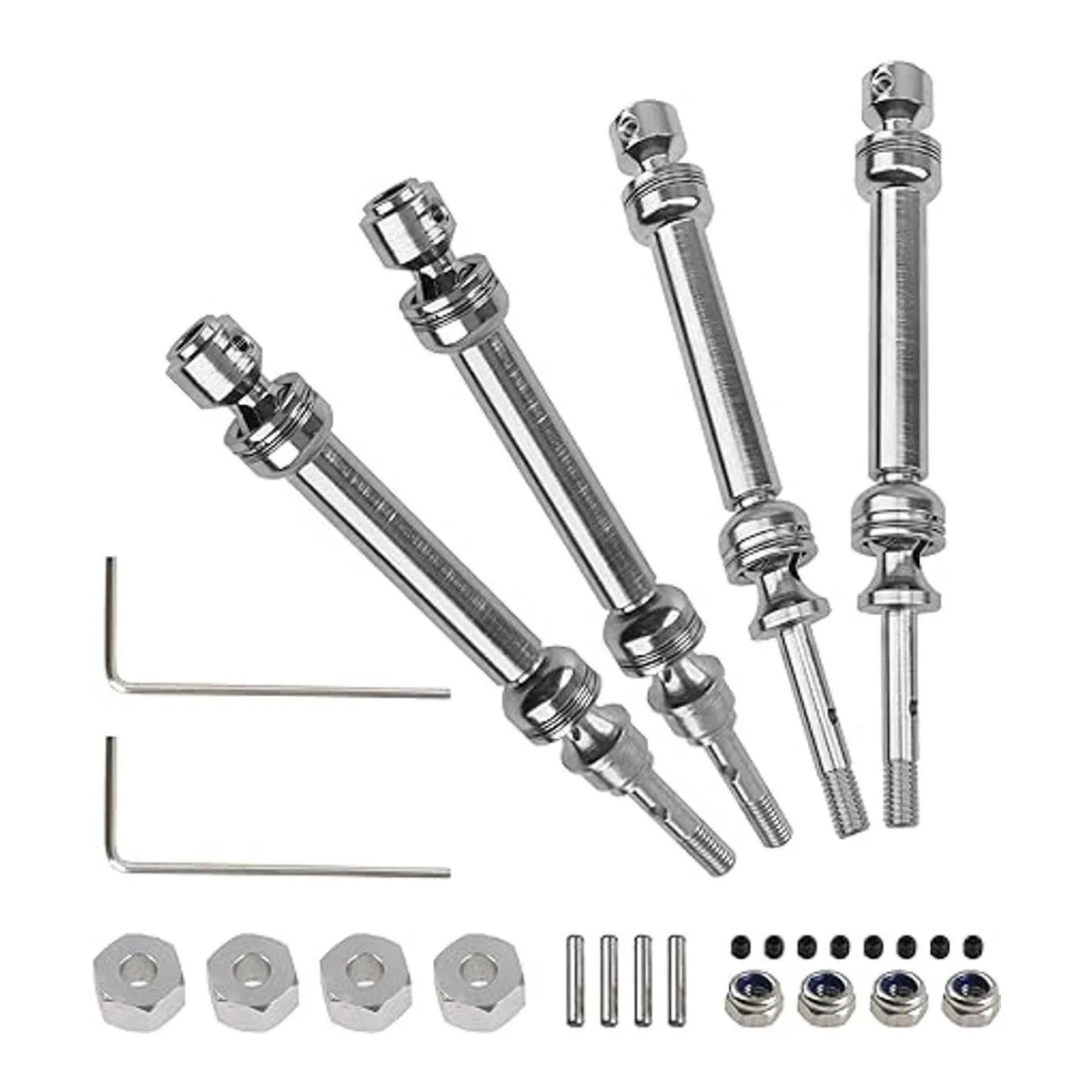 2 pares ShareGoo eje de transmisión de acero delantero y trasero compatible con Traxxas Slash 4X4 Nitro Rustler VXL Stampede 4X4 110 RC camión plata