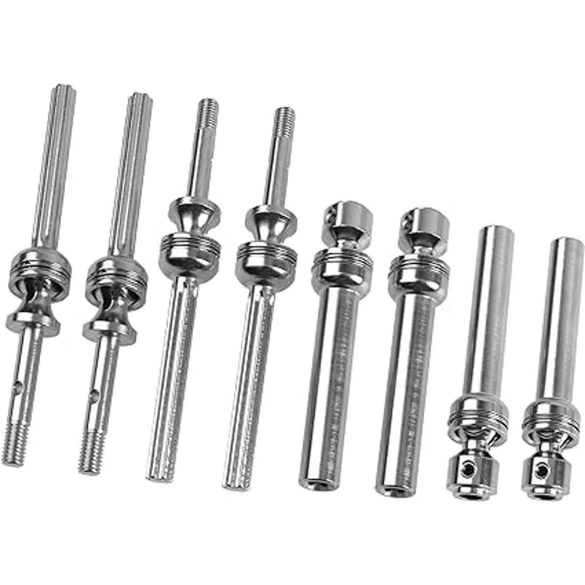 El paquete incluye 2 ejes de transmisión frontal universales y 2 ejes de transmisión traseros y 4 cubos hexagonales de rueda. El diseño antiseparación integrado, reduce la tasa de fallos.
