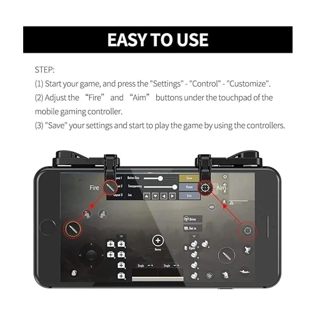 Buena experiencia de juego: fácil de usar, alta sensibilidad, retroalimentación física con botones. Utilizando nuestro controlador de juego móvil, puedes mover, ajustar el ángulo, apuntar y disparar al mismo tiempo con los pulgares y los dedos índice de la mano izquierda y derecha.