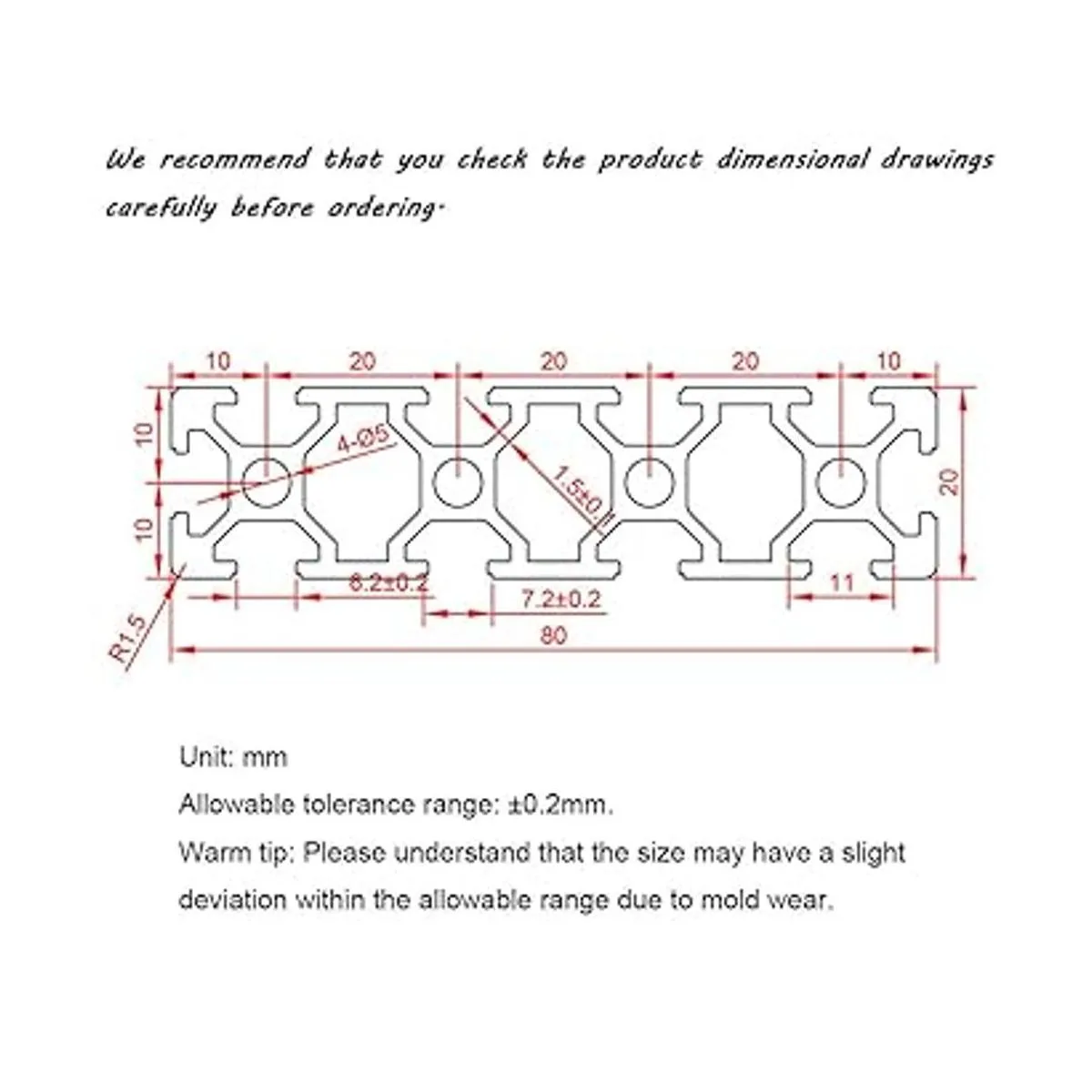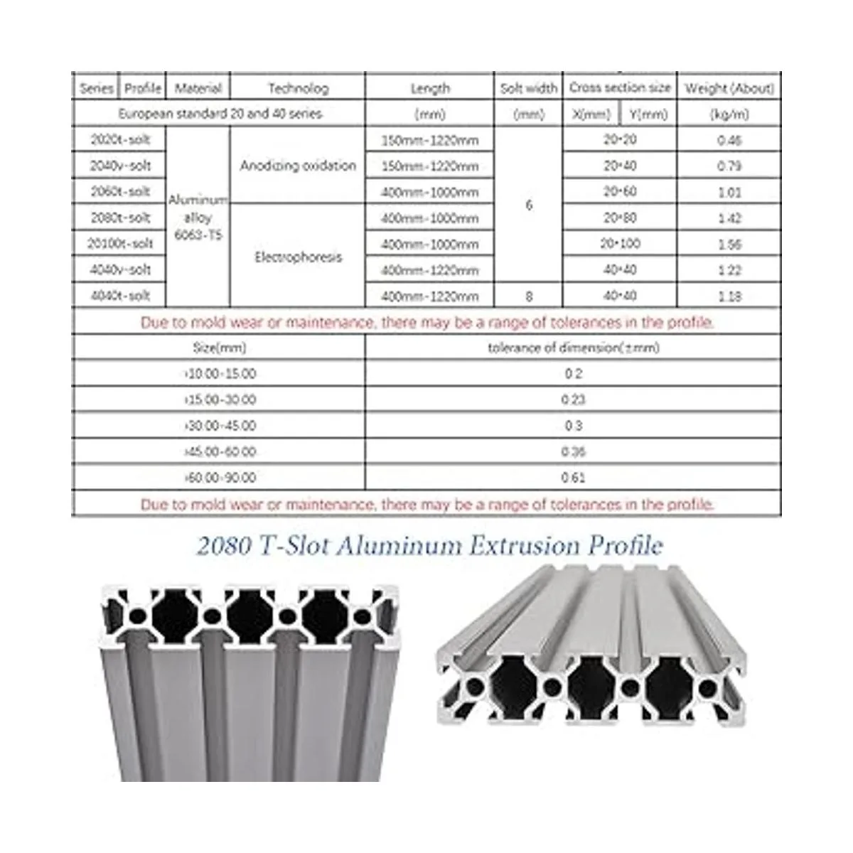 20 series 2080 perfil de extrusión de aluminio ranura en T hecha de material 6063T5, superficie lisa, estructura fuerte y larga vida útil. Compatible con todos los cierres y accesorios de la serie 20.