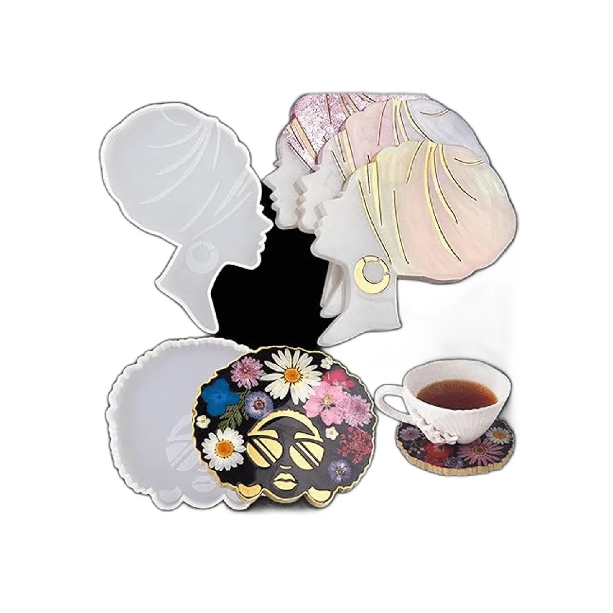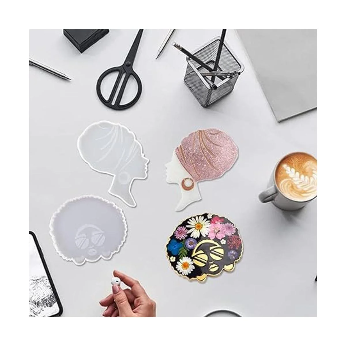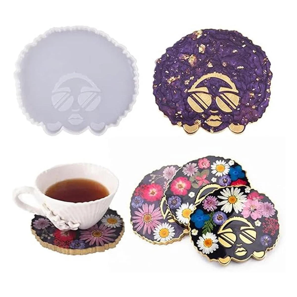 2 piezas Afro hembra cabeza posavasos resina molde silicona mujer niña resina epoxi molde de fundición irregular Coaster taza bandeja vela vela jabón titular pintura DIY hogar mesa decoración