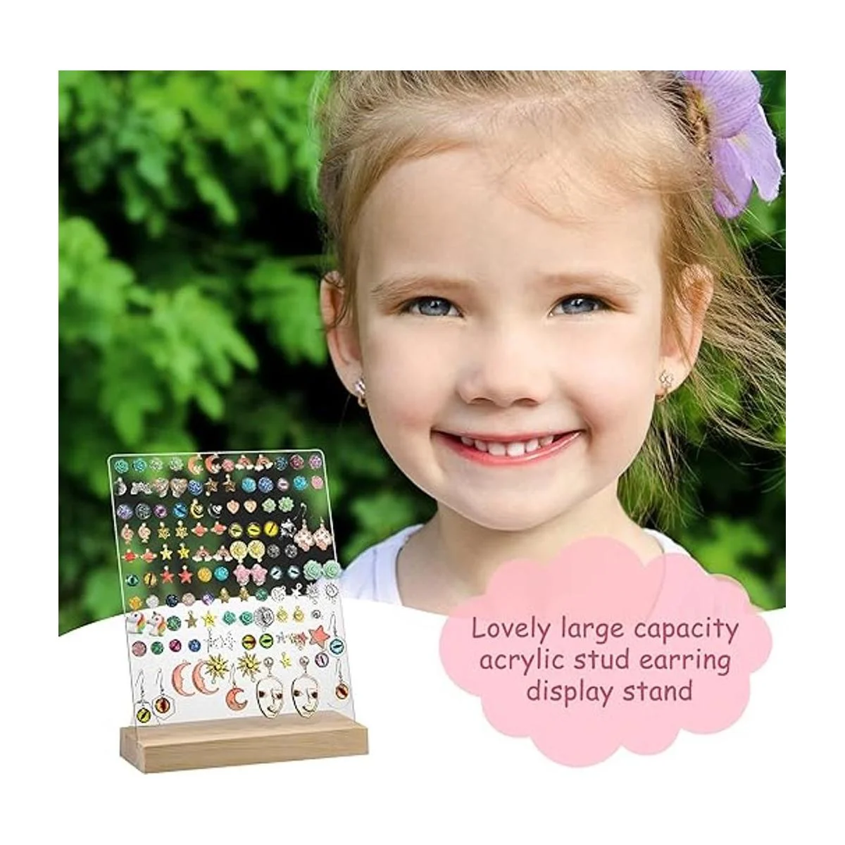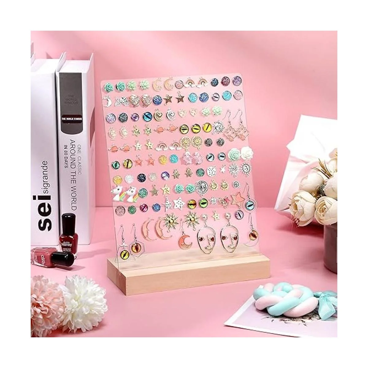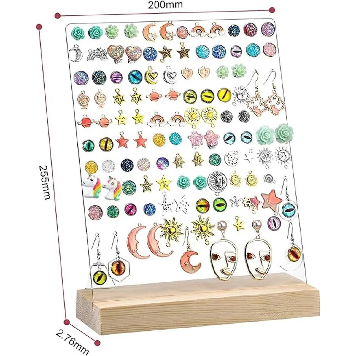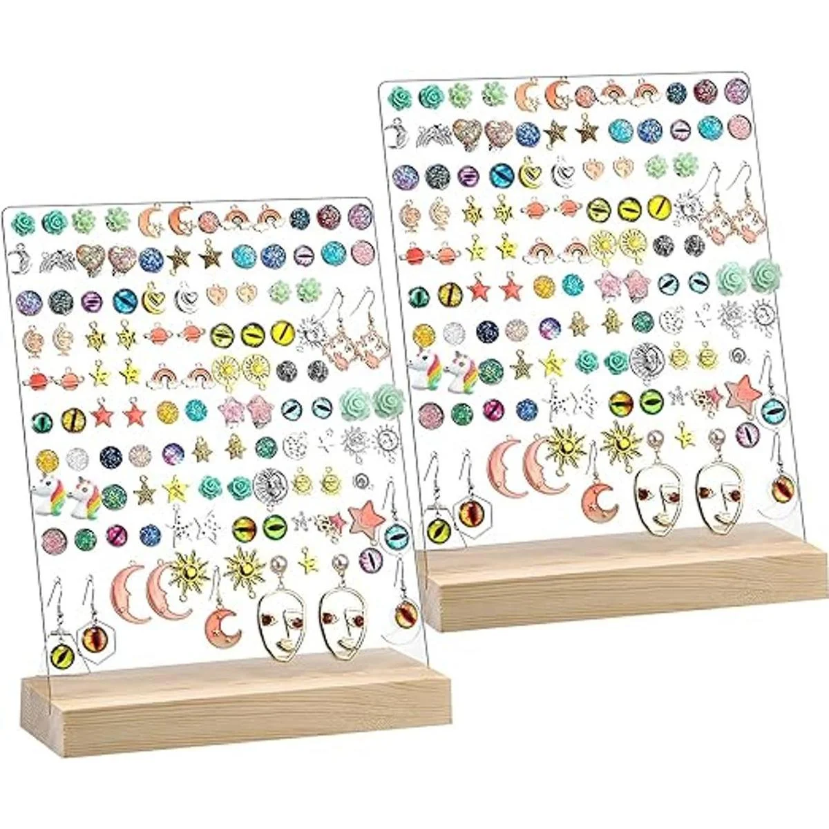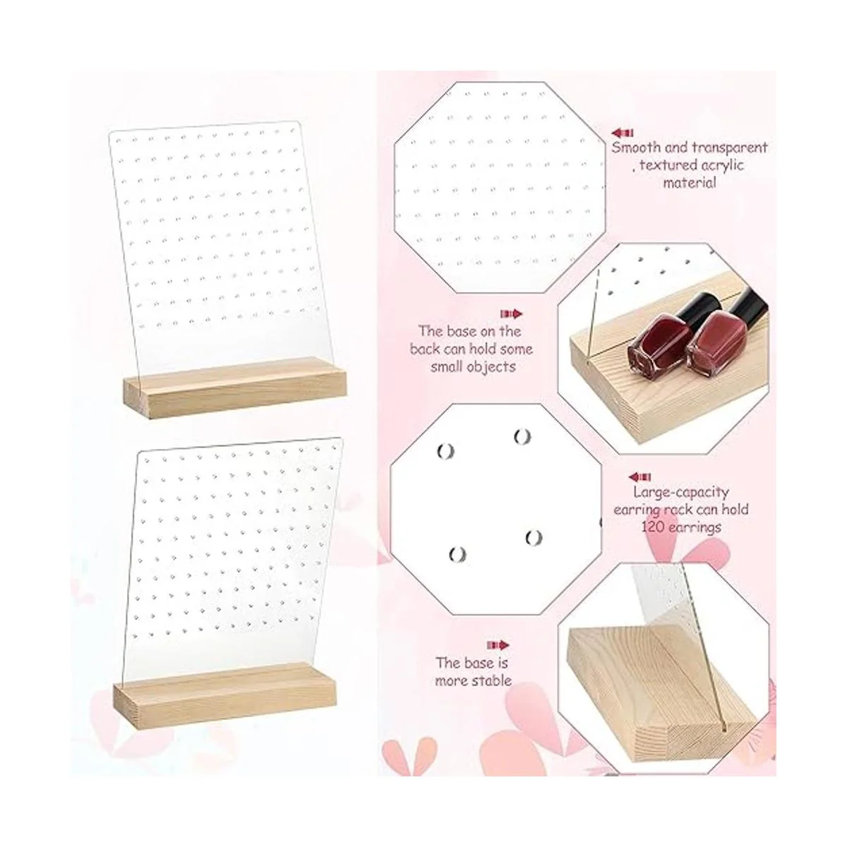 2 piezas de 120 agujeros acrílico pendientes titulares acrílico transparente pendientes exhibición Pegboards con bases de madera Ear Studs soporte acrílico pendiente organizador soporte joyería escaparate rack para pendientes joyería pendiente