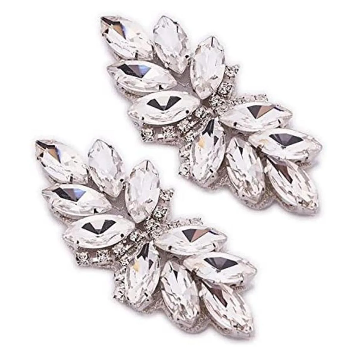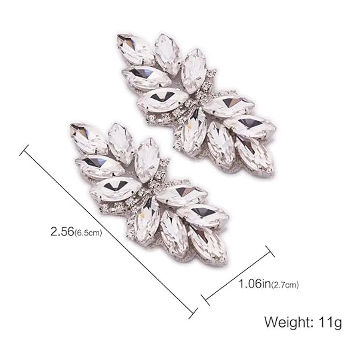 2 piezas de apliques de cristal de diamantes de imitación plateados para planchar, clips de zapatos para bombas, apliques de costura de fijación caliente para zapatos y vestidos de bricolaje 2.56 x 0.98 pulgadas