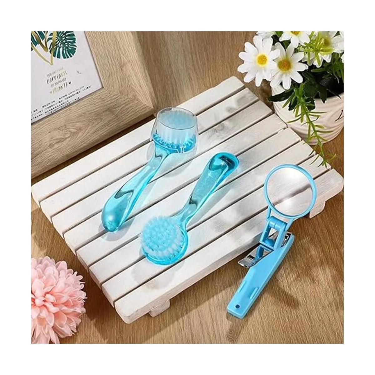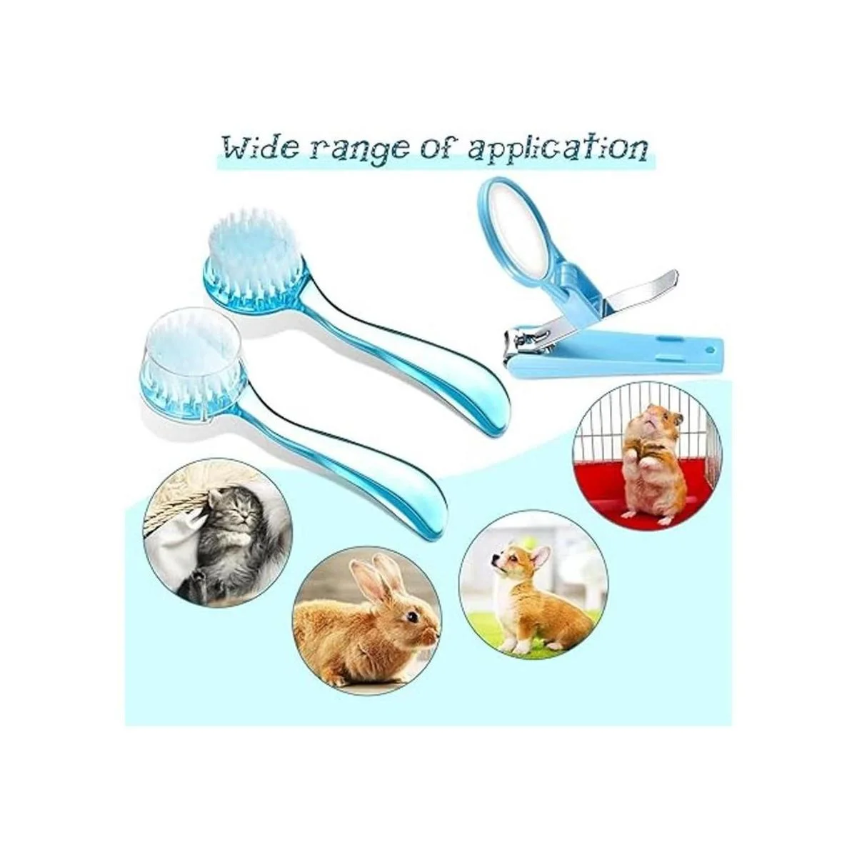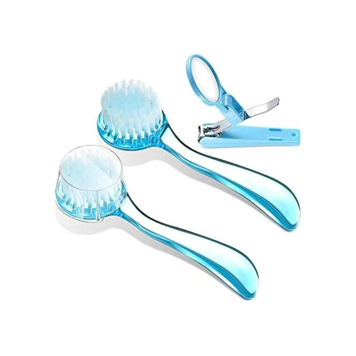 Recibirás: 2 cepillos de baño suaves en azul y un cortaúñas con lupa en azul, herramienta de buena cantidad para mantener a tu mascota limpia