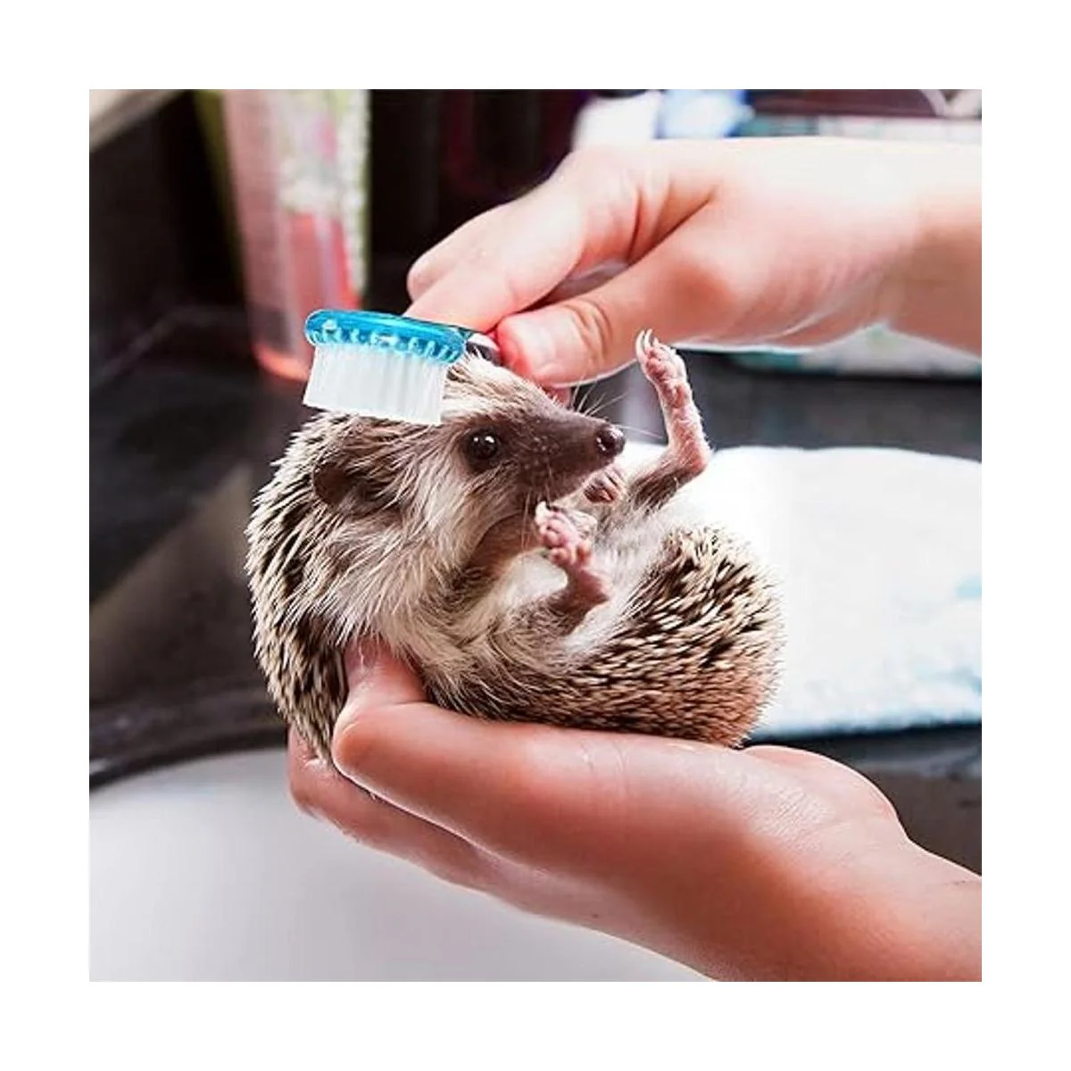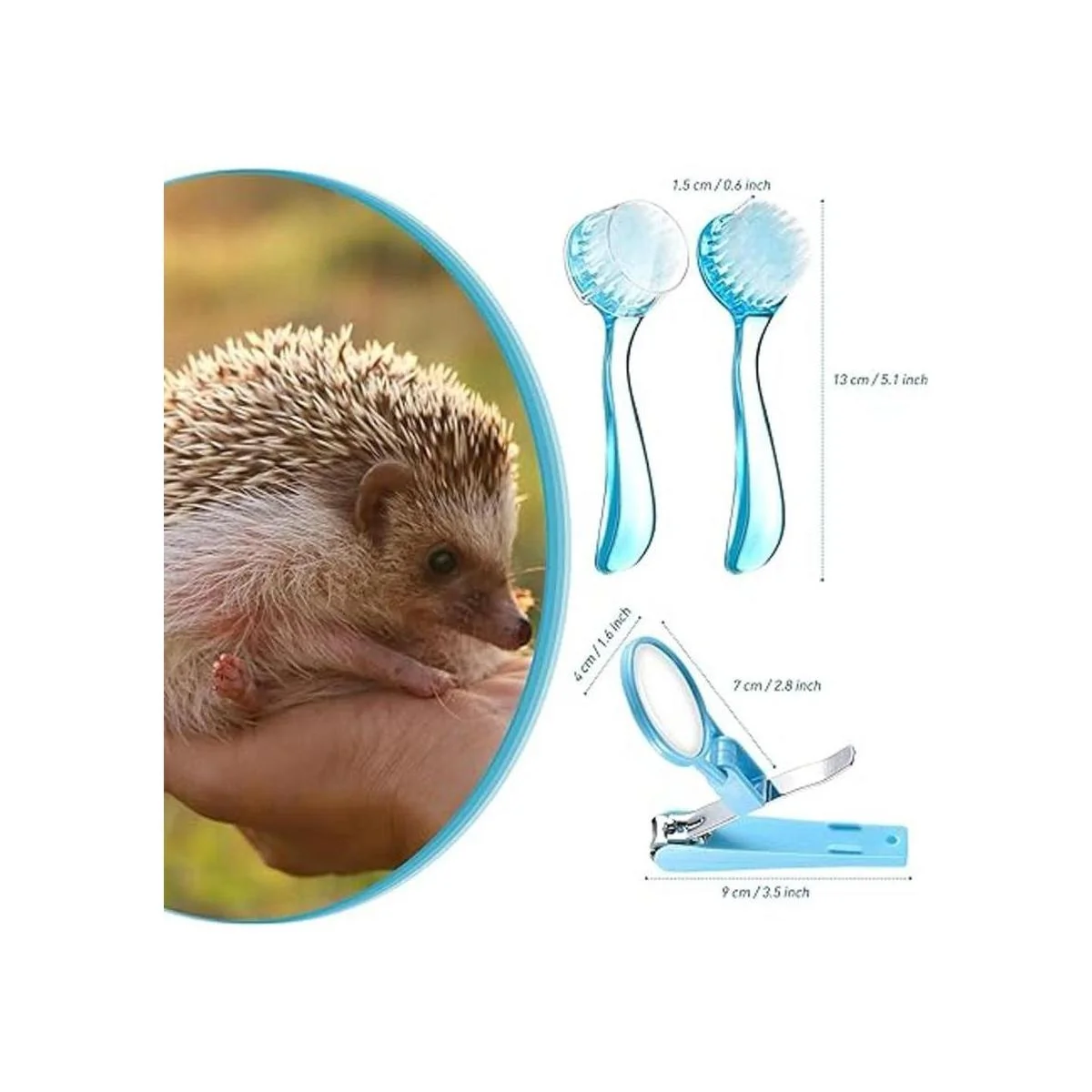2 piezas de cepillo de baño de erizo con cortaúñas de uñas con lupa, cepillo de limpieza de cabeza redonda, cortador de uñas, para hámster de mascotas, animales pequeños
