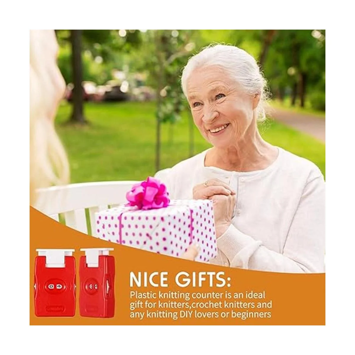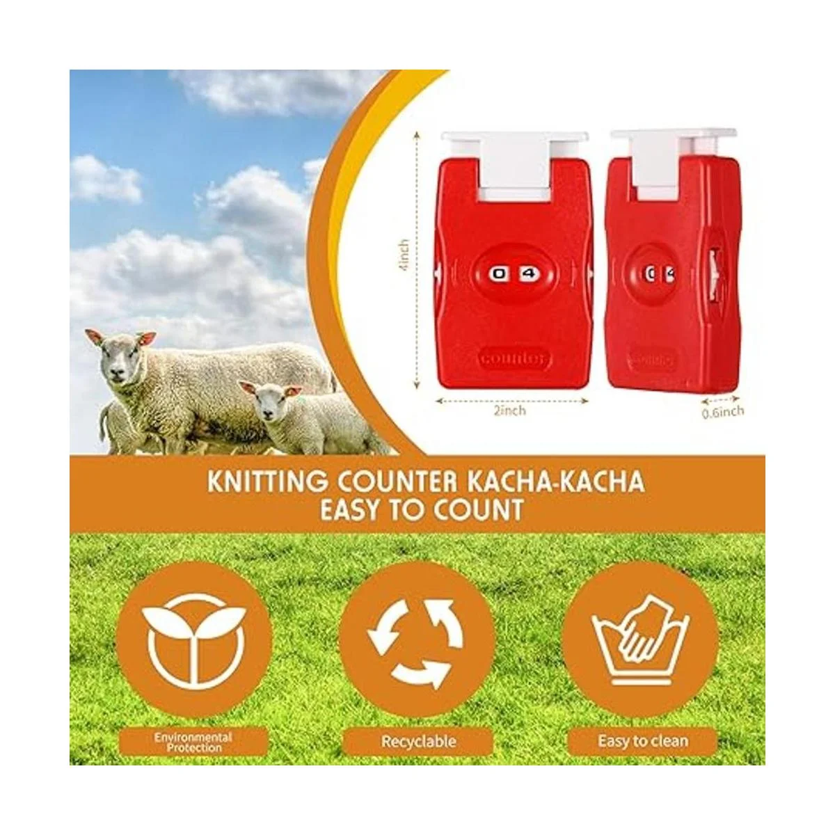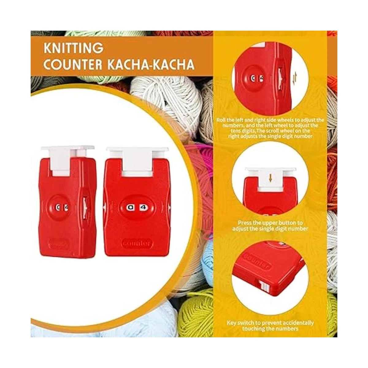 2 piezas de contador de tejer, contador de puntada de punto KachaKacha, herramienta de marcado de aguja de plástico, contador de punto de ganchillo, rojo