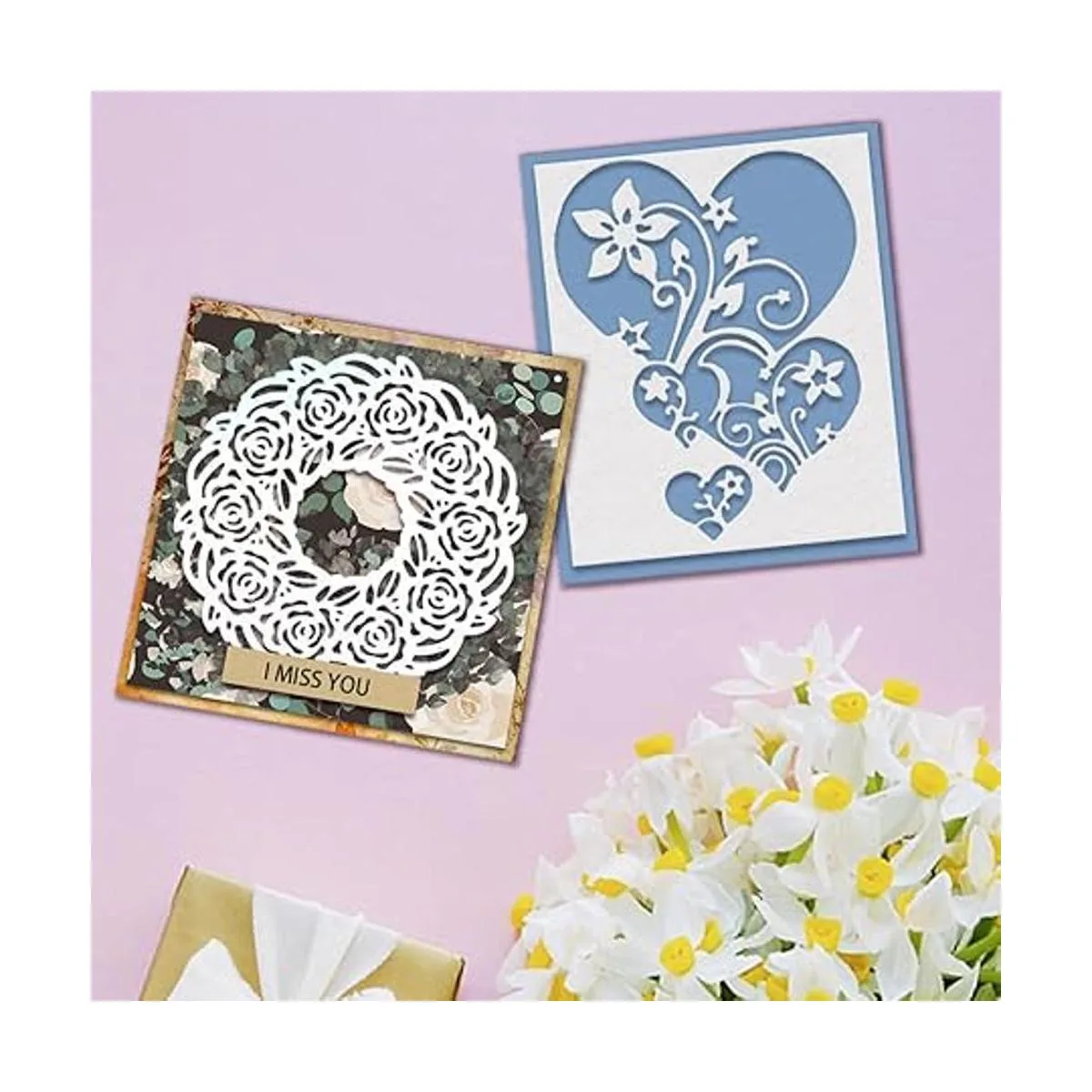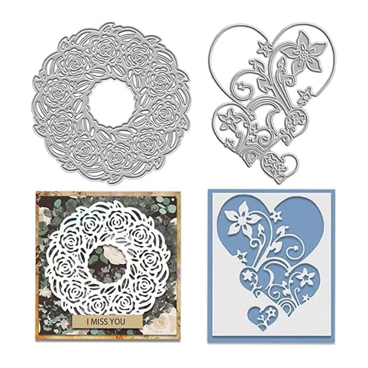 2 piezas de corona de flores troqueladas para hacer tarjetas, juegos de troqueles de corte de flores de corazón, plantillas de troqueles de hojas de vides, plantillas de relieve para álbumes de recortes, tarjetas, álbumes de manualidades, suministros de manualidades