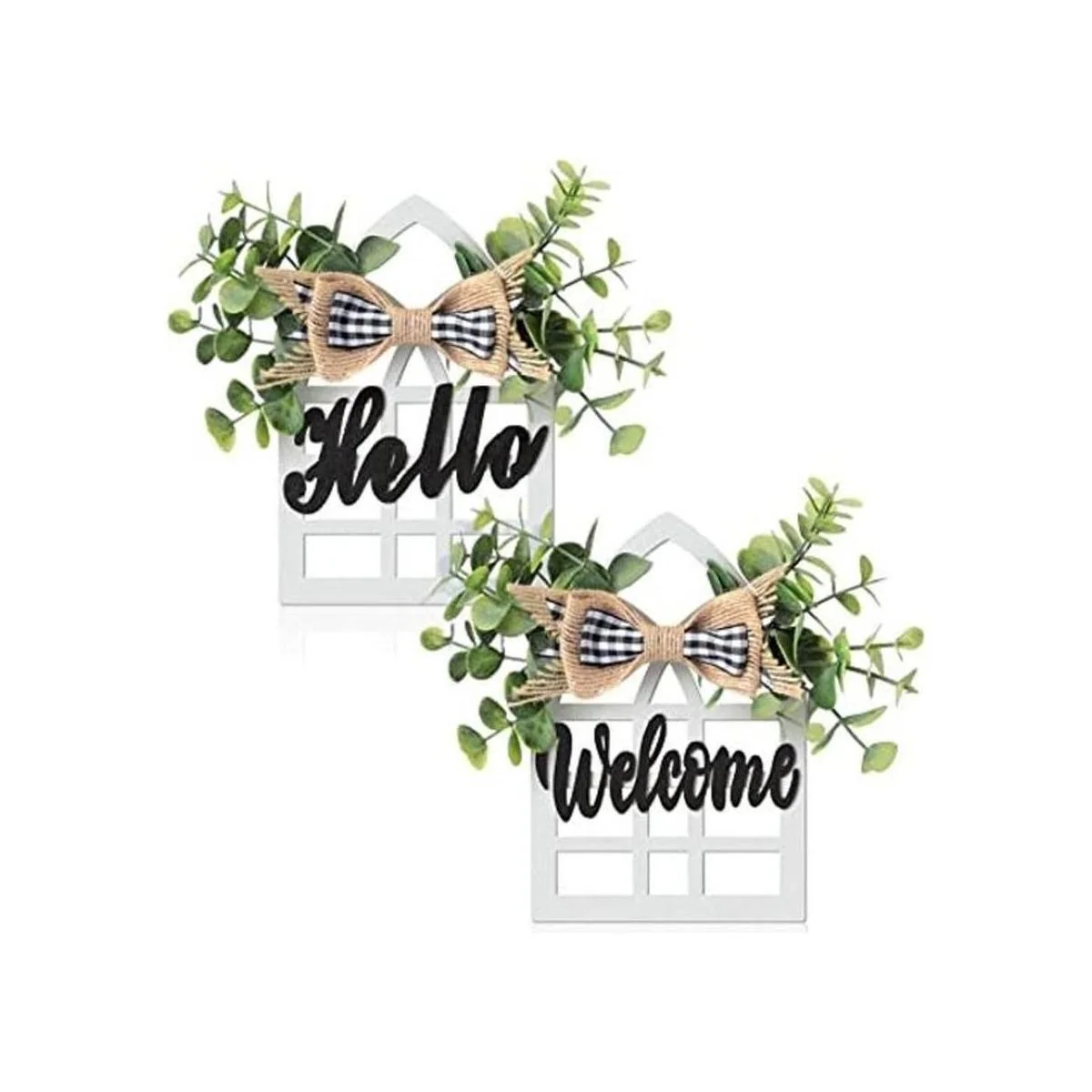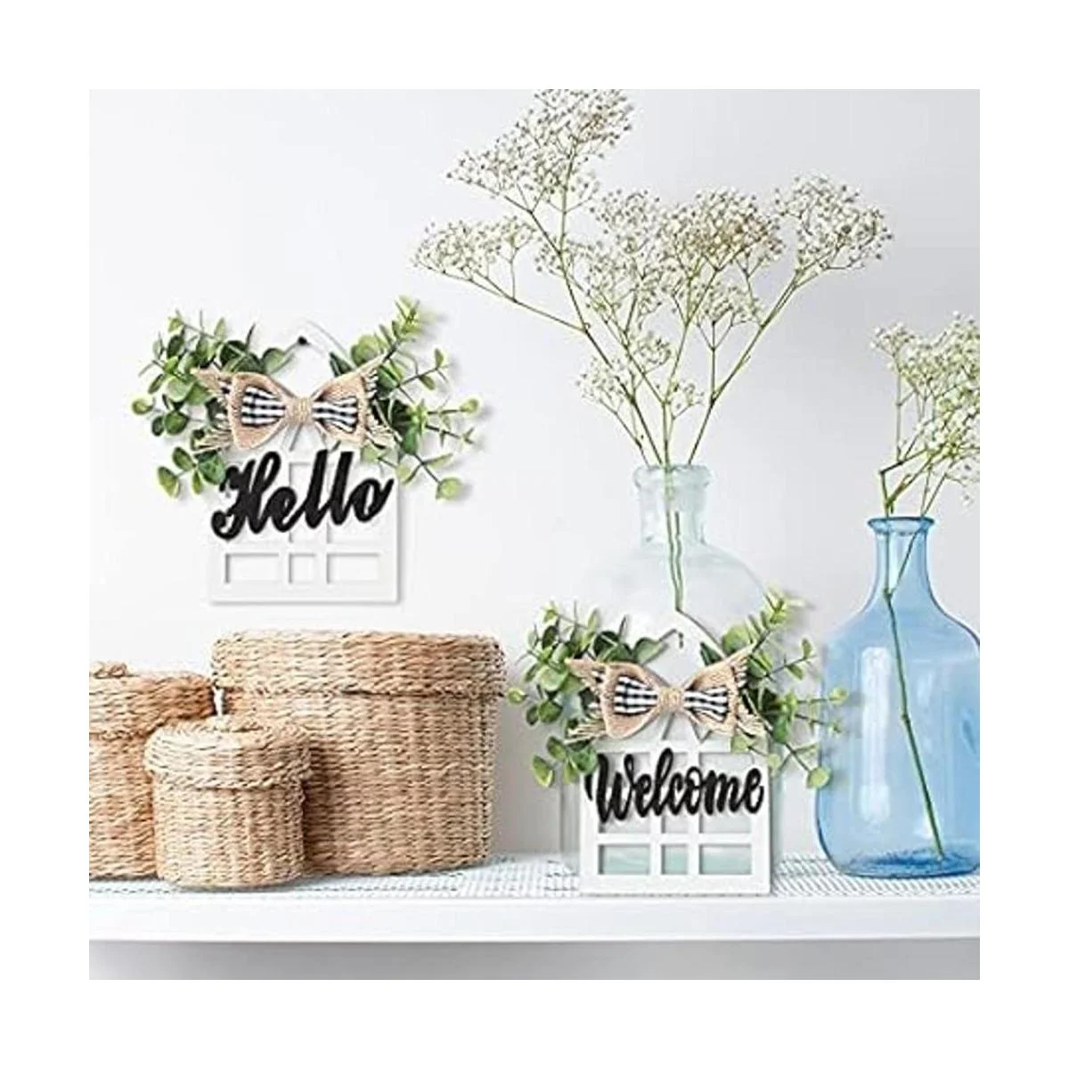 Diseño atractivo: diferentes palabras están en estas dos decoraciones de letreros de madera, es decir, Hola y bienvenida, que mostrará tu hospitalidad y deleitará a tus invitados hasta cierto momento; la pajarita es realmente linda, lo que añadirá brillo a tu hogar, mientras que el material de madera, el color blanco y el diseño rústico pueden combinar con varios estilos de casa, lo que es fácil de mezclar en el entorno circundante