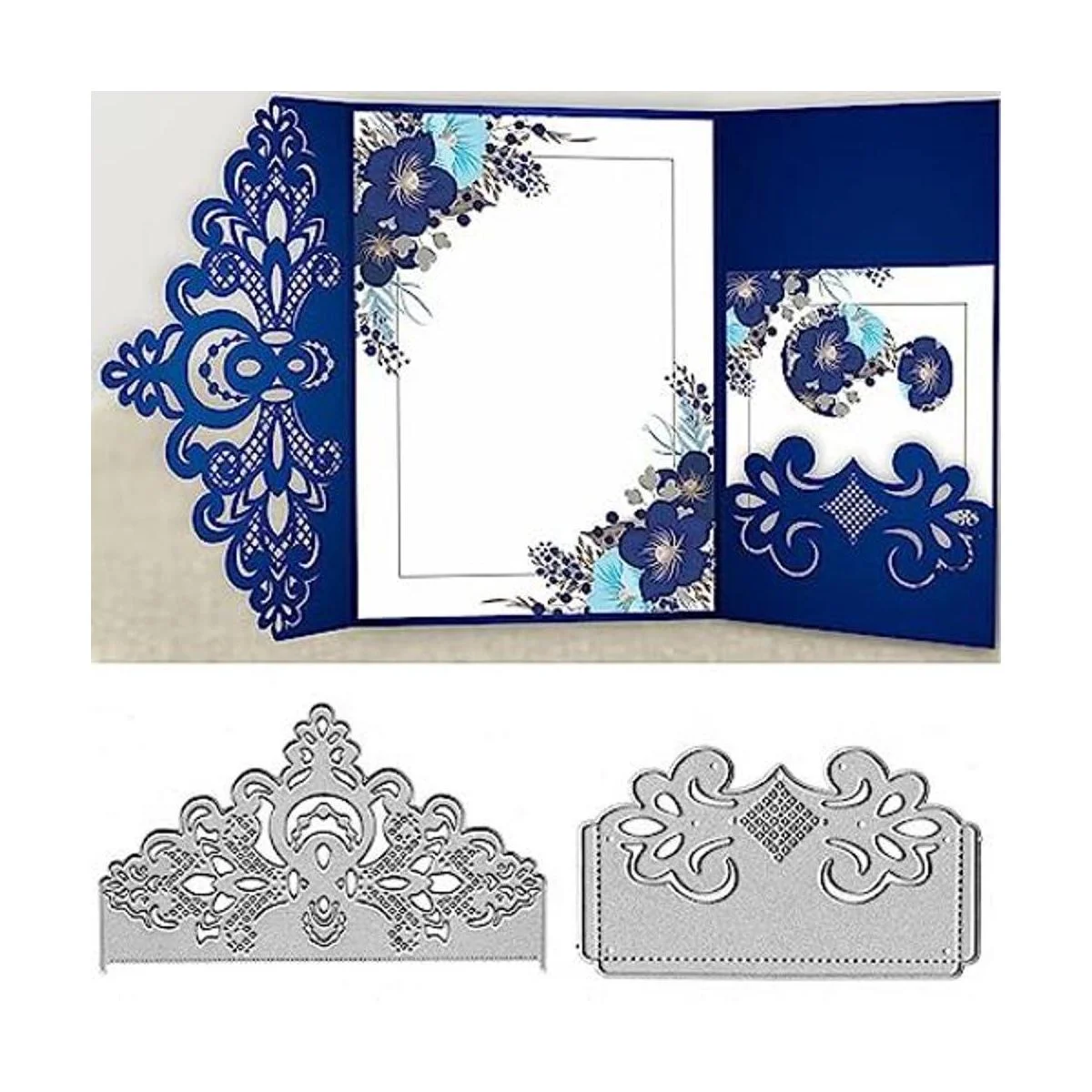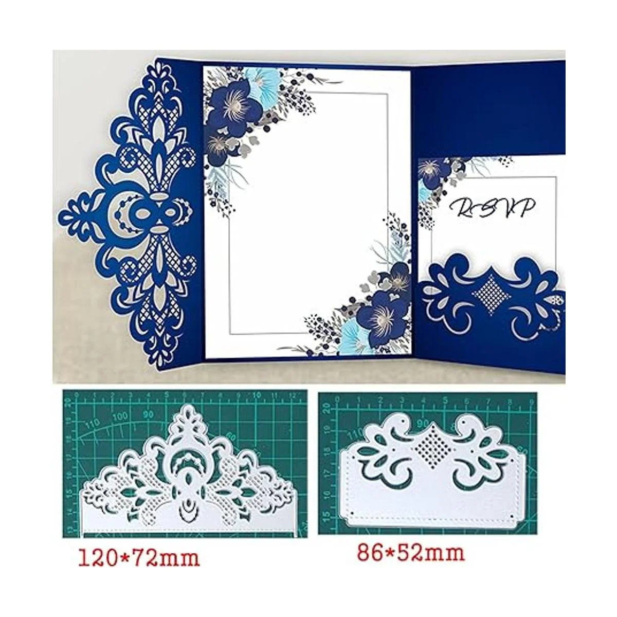 Patrón: forma de encaje exterior, tamaño: 4.724 x 2.835 in, tamaño del bolsillo: 3.386 x 2.047 in, color: plateado, el paquete incluye: 2 piezas de forma de encaje, troqueles de corte, para tarjetas de boda