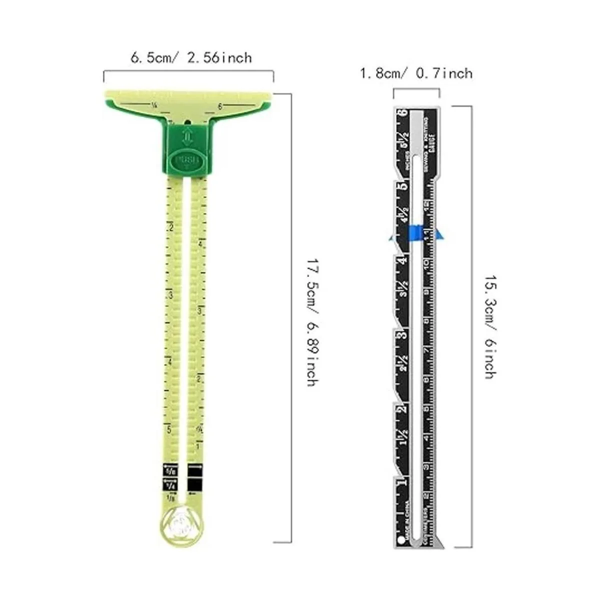 2 piezas de herramienta de medición de medición de calibre de costura, 5 en 1, herramienta de medición de calibre deslizante, regla de costura de tela para tejer, manualidades, costura, suministros para principiantes
