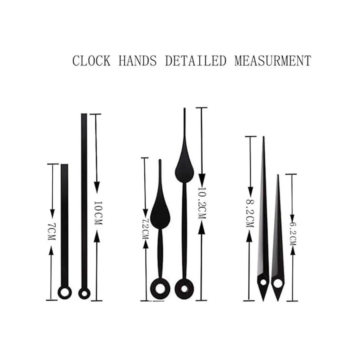 Tamaño de las manecillas del reloj: el tamaño indicado en la imagen prevalecerá, están hechas de aluminio, por favor, no las instales con demasiada presión o se doblarán, comprueba los tamaños antes de comprar.