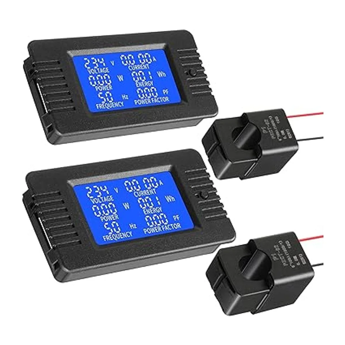2 piezas de medidor de potencia de CA CA 80260 V 100 A Crs022b LCD de voltaje de corriente digital y monitor de corriente, medidor de voltímetro de potencia amperímetro con transformador de núcleo dividido de corriente 100 A CT
