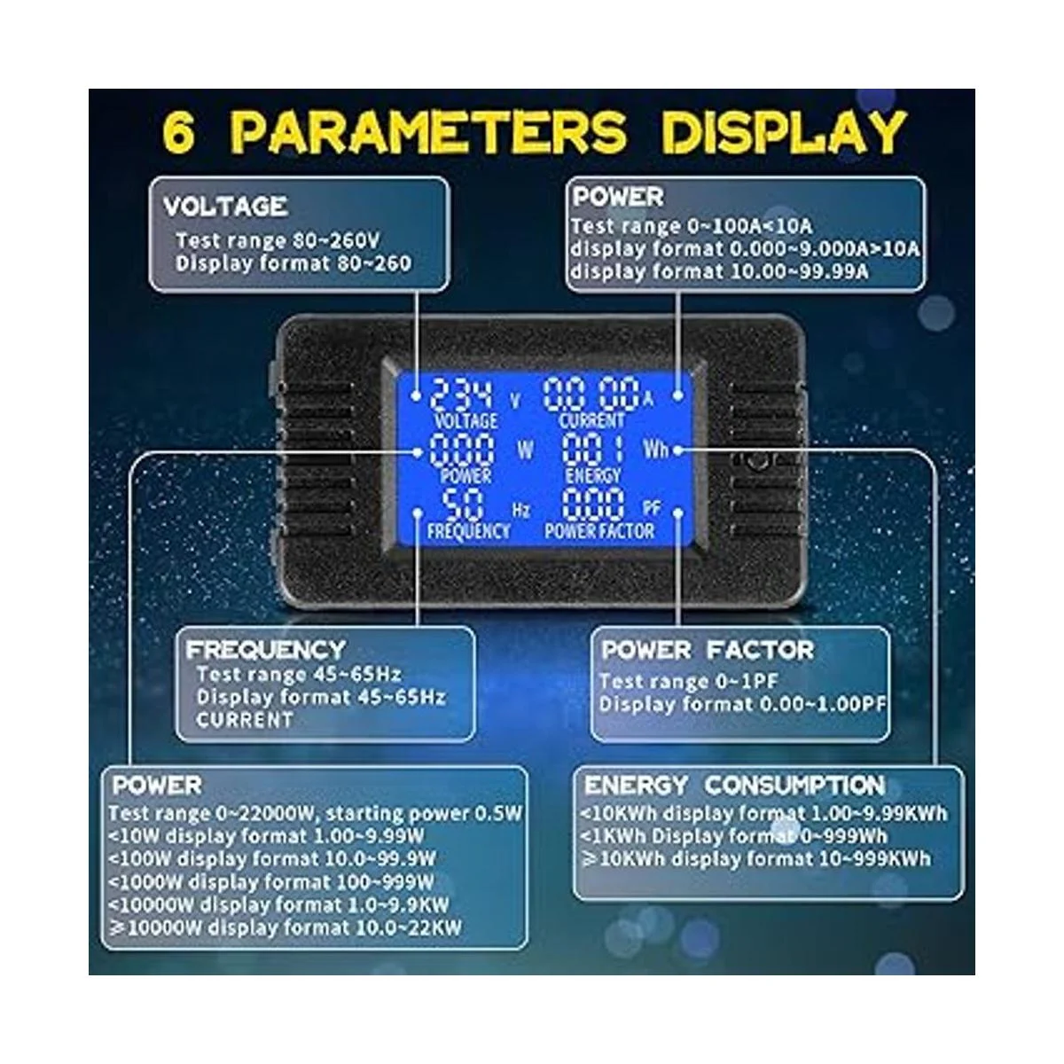 Multímetro digital 6 en 1: la pantalla grande puede mostrar voltaje, corriente, potencia activa, energía acumulada, frecuencia, factor de potencia al mismo tiempo, lo que es práctico de usar y puede satisfacer tus diversas necesidades de trabajo