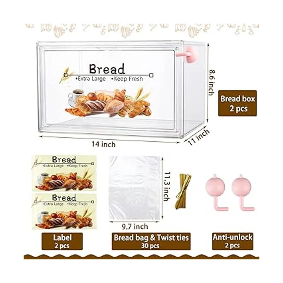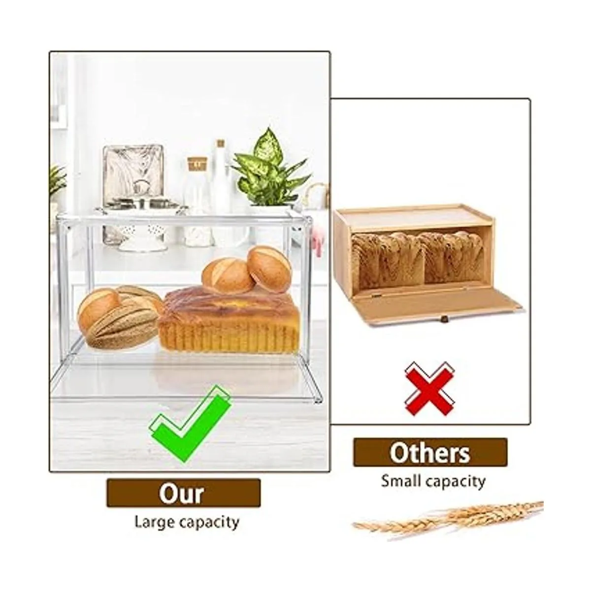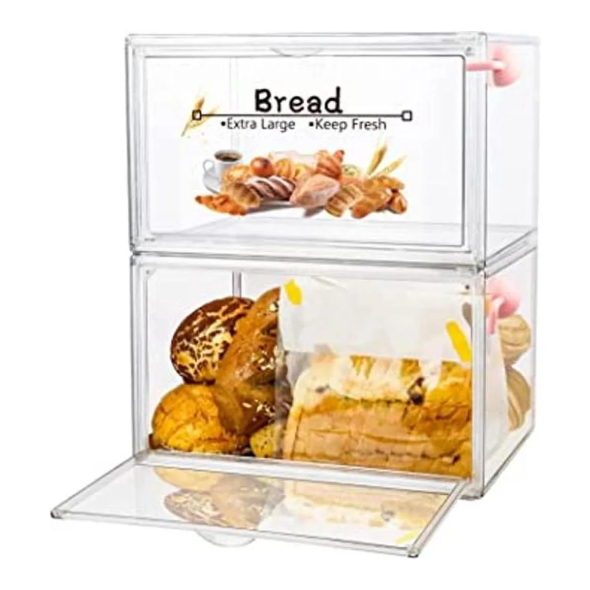 2 piezas de panera grande para encimera de cocina, contenedor apilable de doble capa para almacenamiento de pan, cajas de pan transparentes para encimera de cocina, guardián de pan para pan casero, bagel, magdalenas, rollos