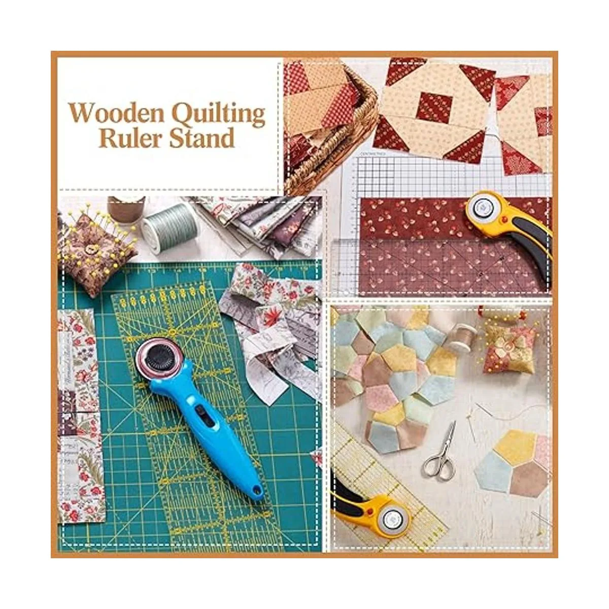 Acabado fino: el soporte para regla de acolchado está hecho de madera de calidad, resistente y fiable, no se rompe ni deforma fácilmente, con superficie lisa y pulida, sin rebabas puntiagudas, protegiendo tus manos de arañazos, lo que te ofrece una experiencia de uso segura y cómoda