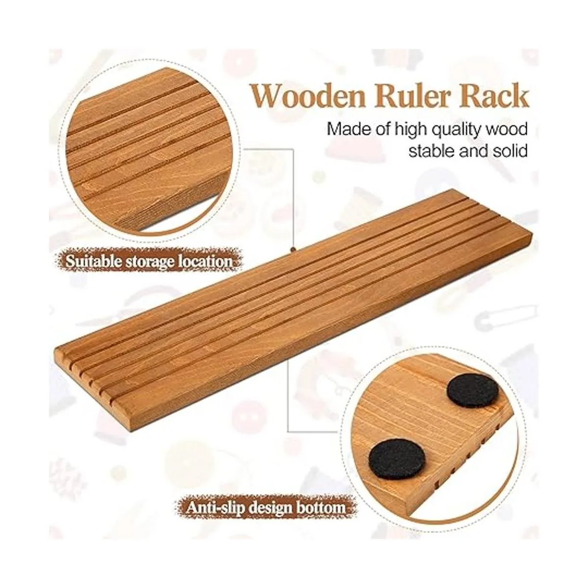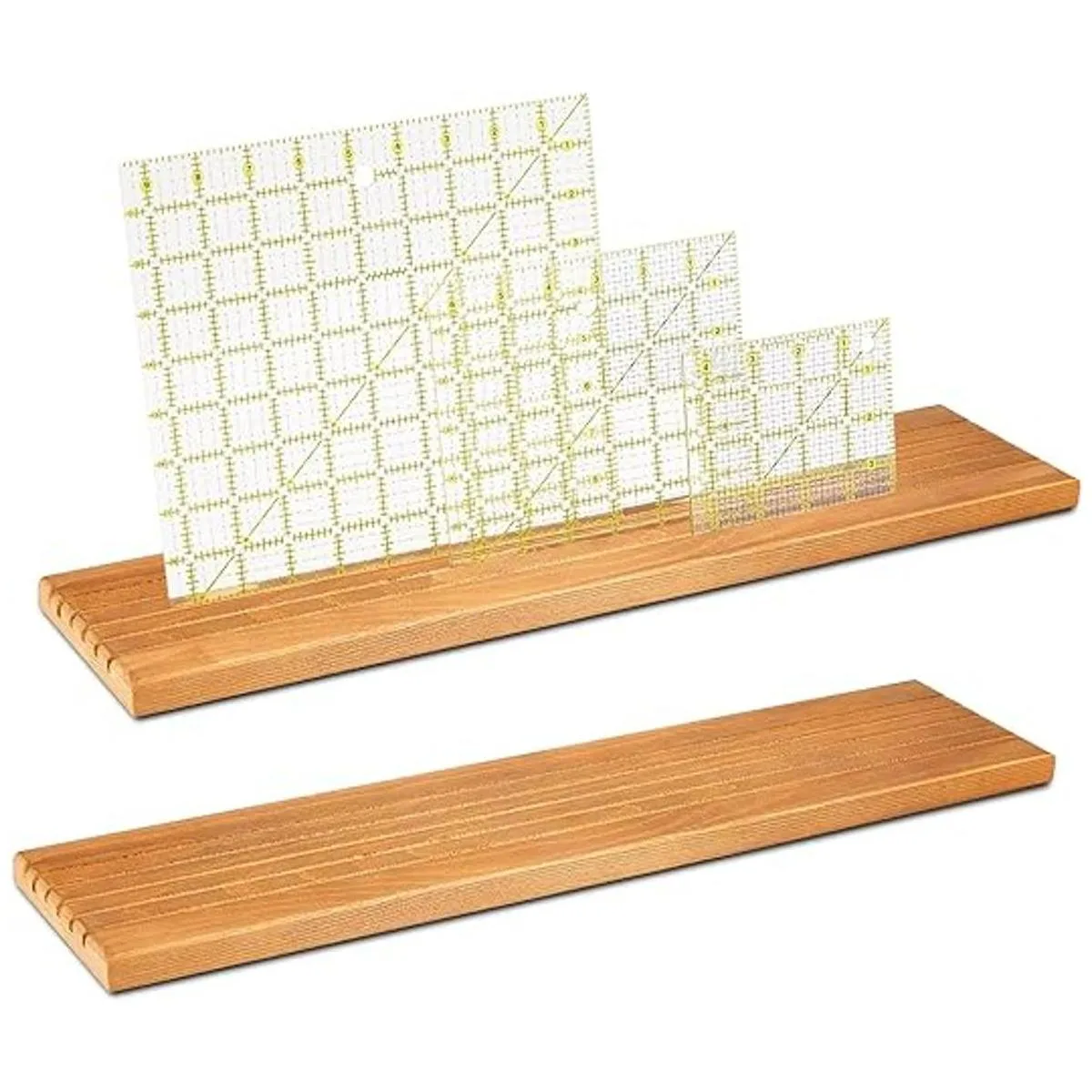 Eficiencia de espacio: el estante de madera para reglas está diseñado con 5 ranuras y una almohadilla antideslizante en la parte inferior, con suficiente espacio para sostener reglas y plantillas de diferentes tamaños, manteniendo tus herramientas de acolchado bien organizadas