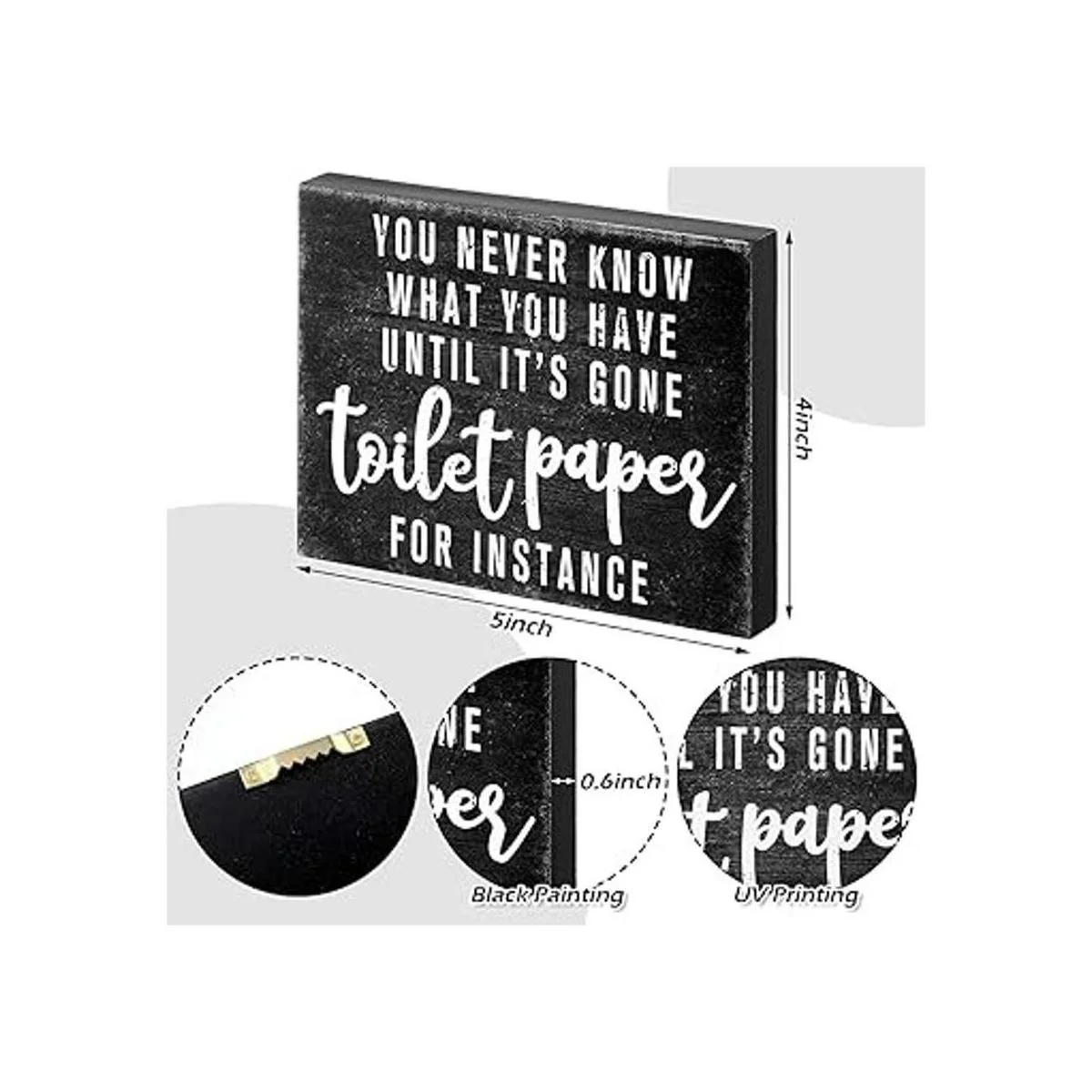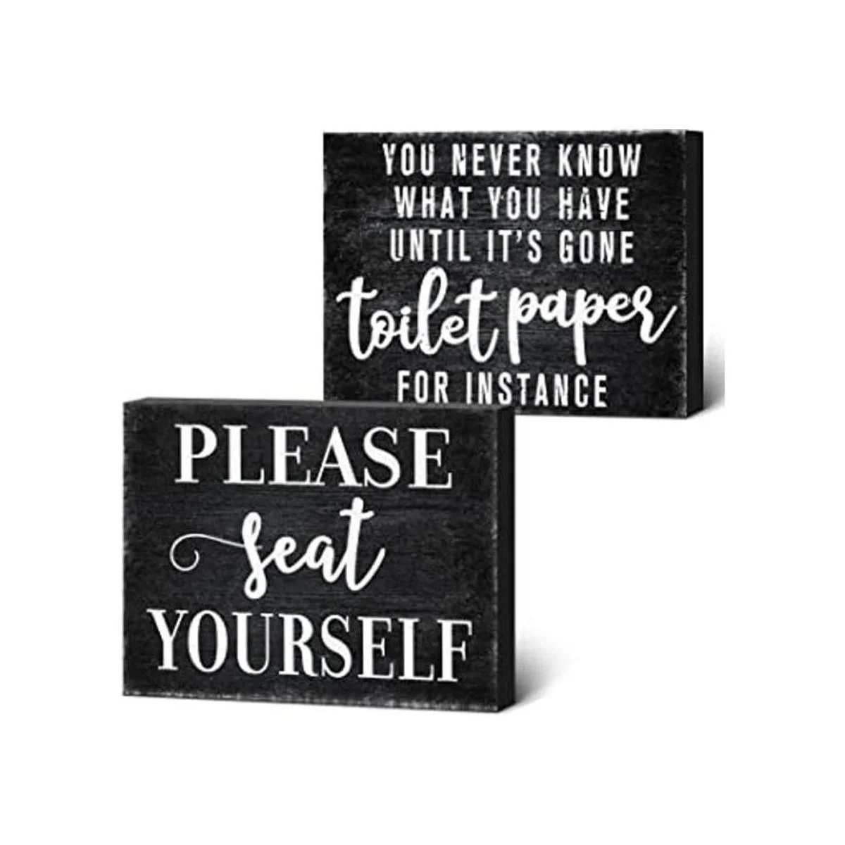 2 piezas divertidas de decoración de baño de granja You Never Know What You Have Until Its Gone Letrero de papel higiénico con texto en inglés Please Seat Yourself Humor, placa de caja de inodoro para decoración de inodoro, 4 x 5 pulgadas negro