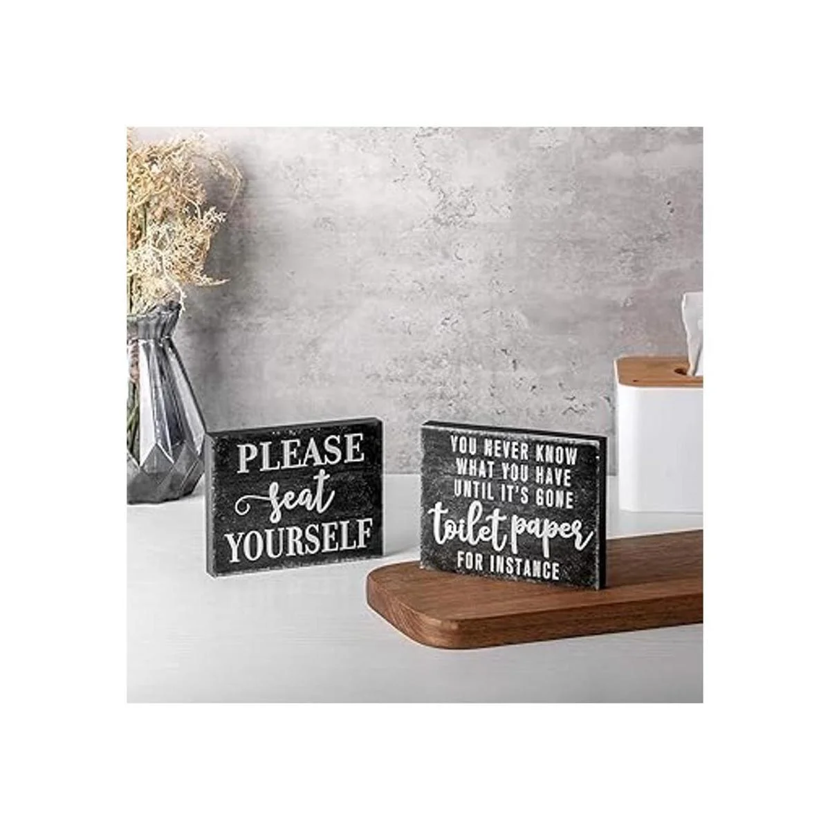 2 piezas divertidas de decoración de baño de granja You Never Know What You Have Until It’s Gone Letrero de papel higiénico con texto en inglés «Please Seat Yourself Humor», placa de caja de inodoro para decoración de inodoro, 4 x 5 pulgadas (negro)