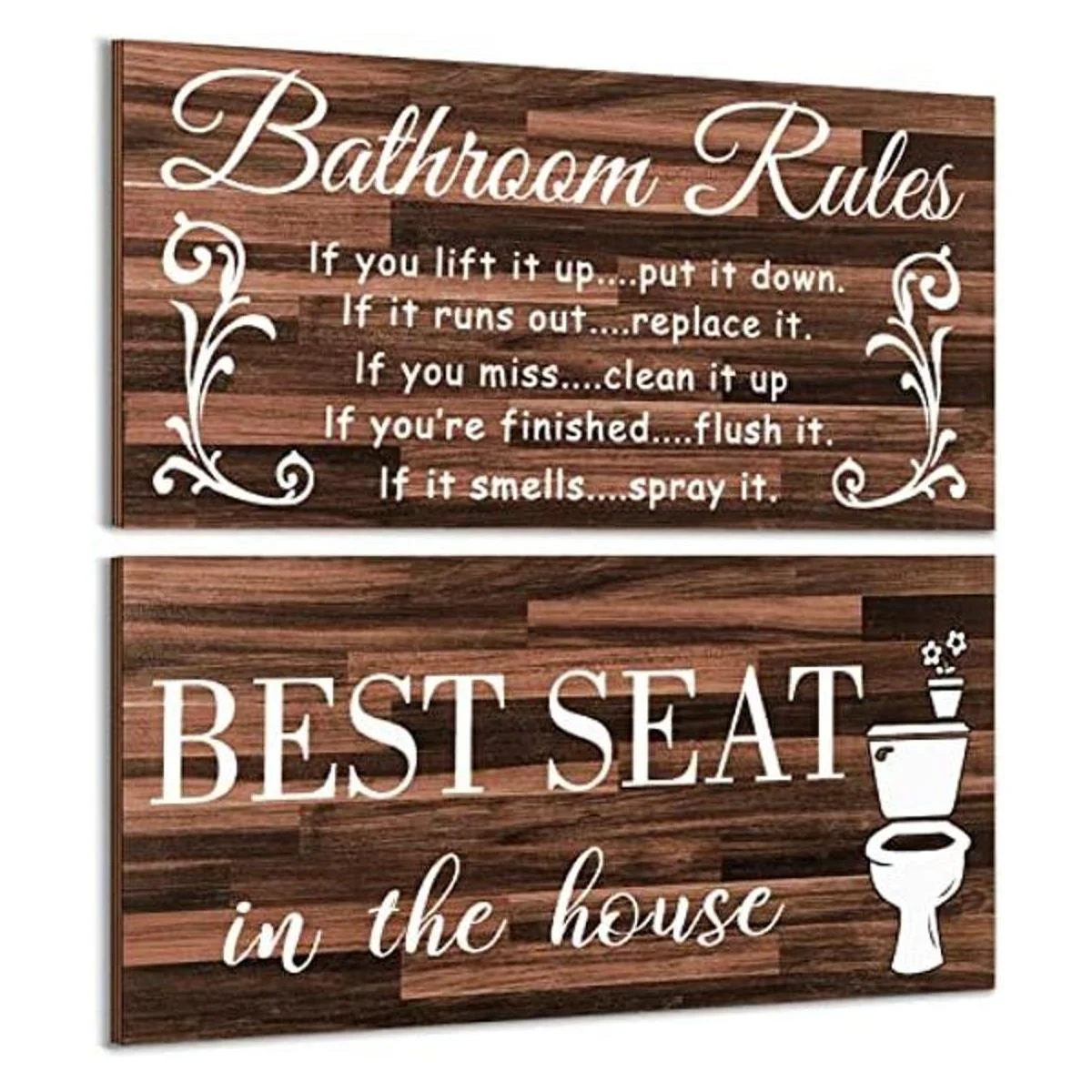 2 piezas divertidas de decoración de pared de baño, decoración de baño de granja, regla de baño, placa de madera rústica para decoración de baño, decoración de pared vintage de madera para baño estilo retro
