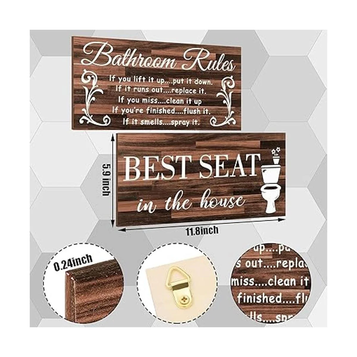 Dimensiones adecuadas: 2 piezas de decoración rústica de baño en diferentes estilos, ambos tienen el mismo tamaño, que miden aproximadamente 11.8 x 5.9 in y 0.25 pulgadas de grosor, cantidad suficiente y medida adecuada para que coincida con todo lo demás en tu baño