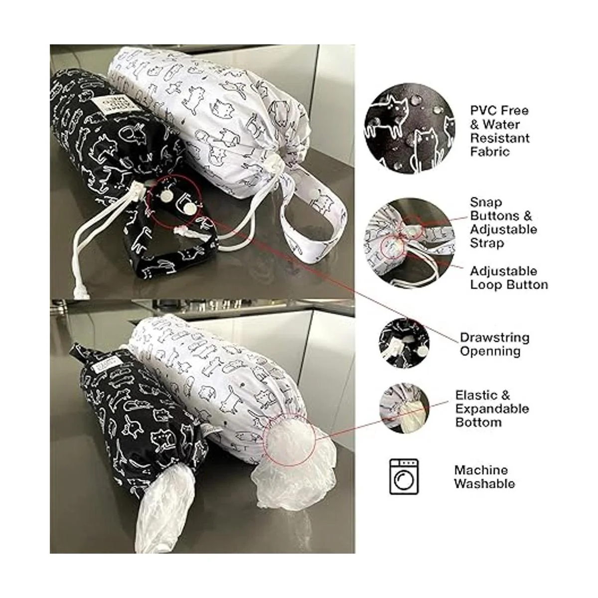Correa de botón a presión: cada soporte de bolsa de plástico tiene una correa de asa en la parte superior del soporte para que puedas colgarlos donde quieras. Hay dos botones de presión en la correa. La correa es ajustable y te permite colgarla o desmontarla sin complicaciones. El mango resistente se puede colgar fácilmente en cualquier lugar como un pomo de puerta, toallero, gancho, manillar de cochecito o cualquier otro lugar en el que te puedas ajustar.