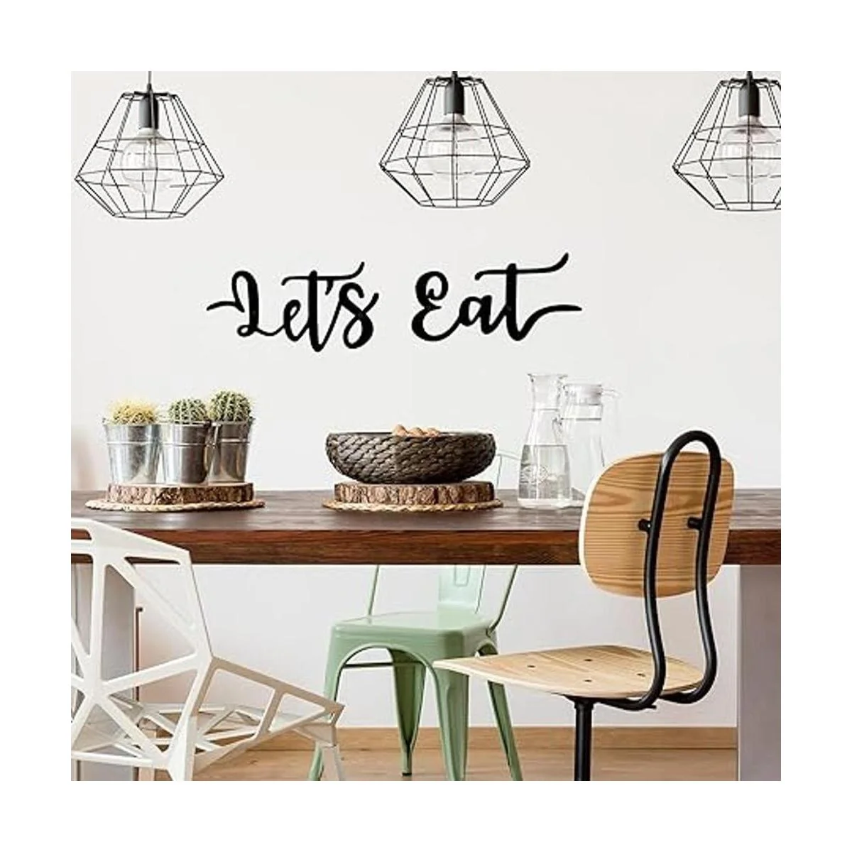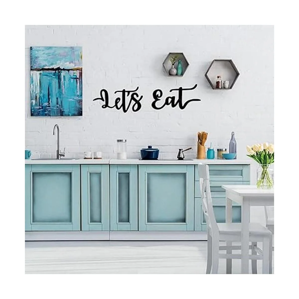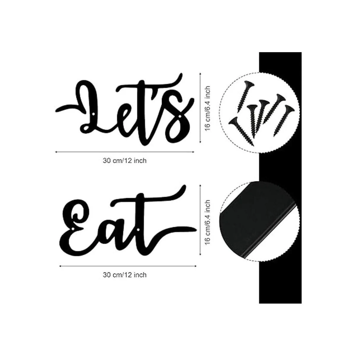 2 piezas Lets Eat Metal Sign, rústica, negro, recorte para comer cocina, cocina colgante placa de pared de casa rural cartel de pared para hogar cocina comedor salón decoración