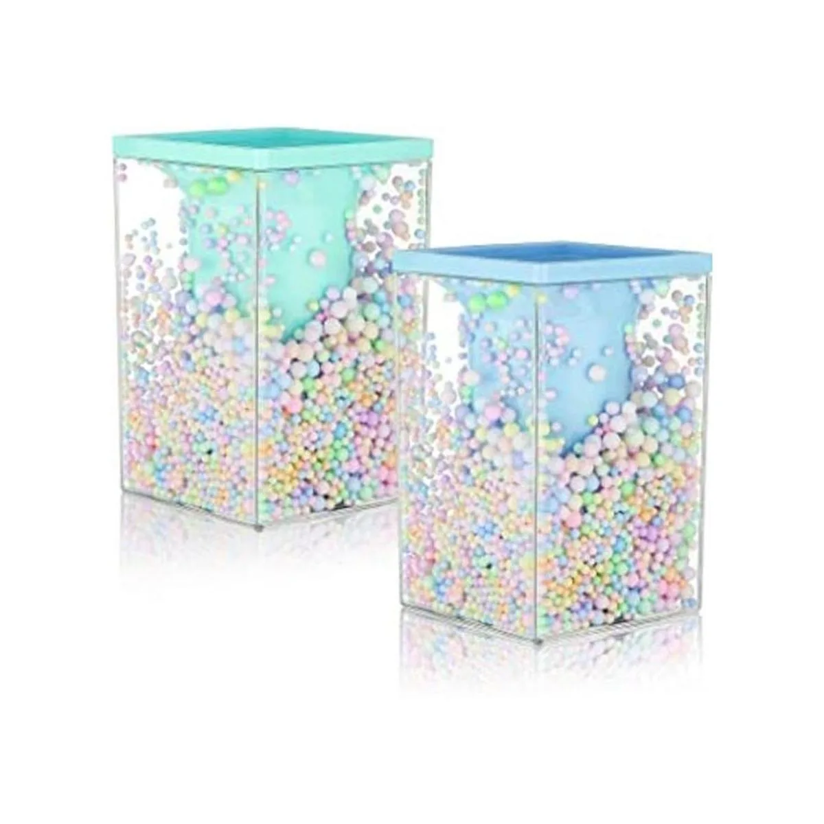 El paquete contiene: recibirás 2 vasos cuadrados en azul y verde, con bolas de burbujas en el interior; el tamaño de los vasos es de 2.8 x 4.3 in, tamaño compacto y no ocupa demasiado espacio