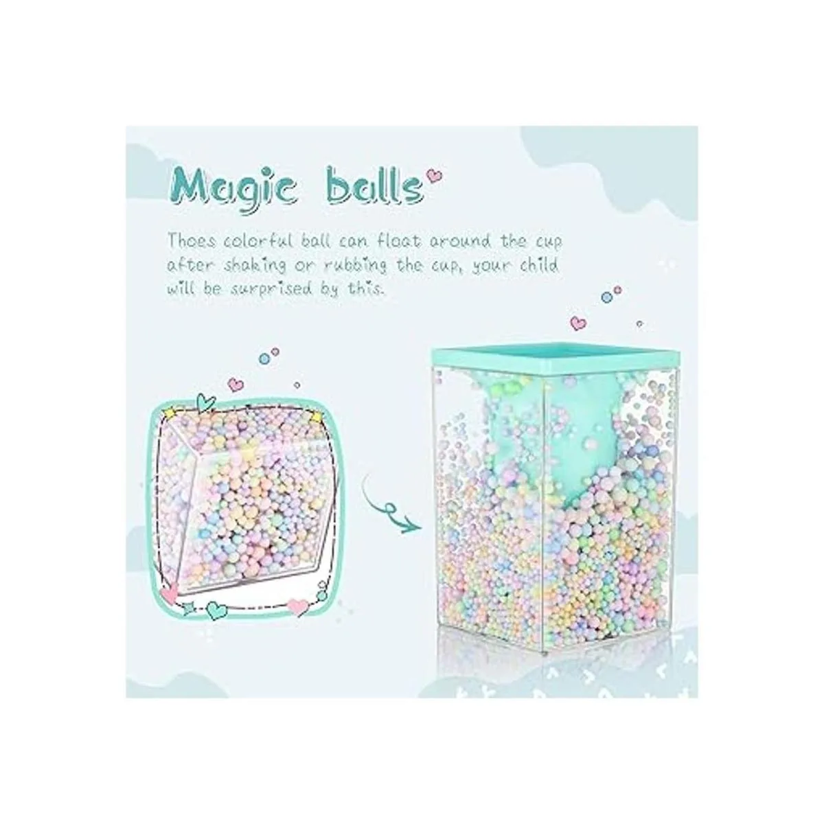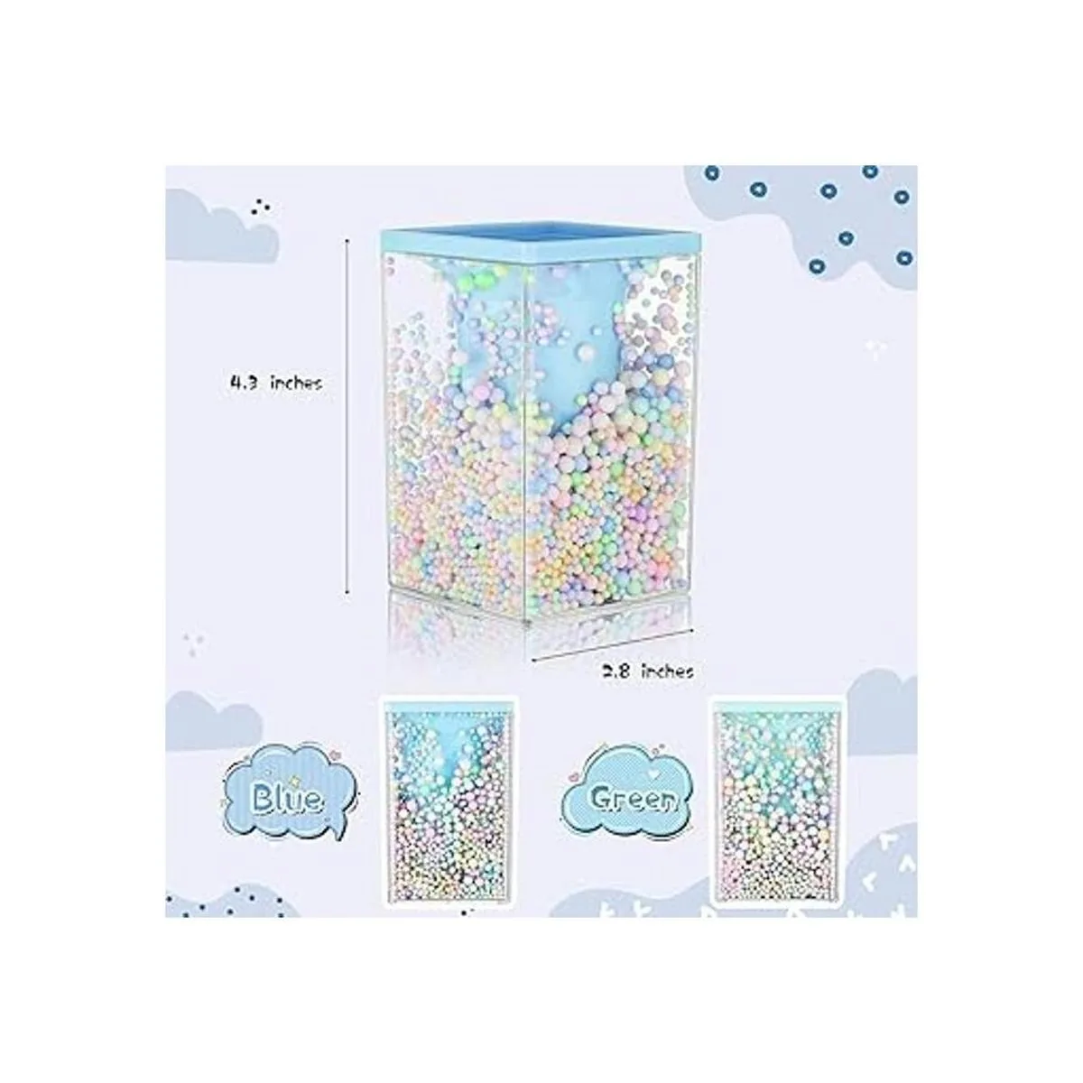 Diseño divertido: estos soportes para lápices contienen pequeñas bolas de espuma de colores, que son muy hermosas y populares entre los niños, niñas pequeñas; después de agitar y frotar la taza, las bolas flotarán alrededor de la taza, muy interesantes y hermosas