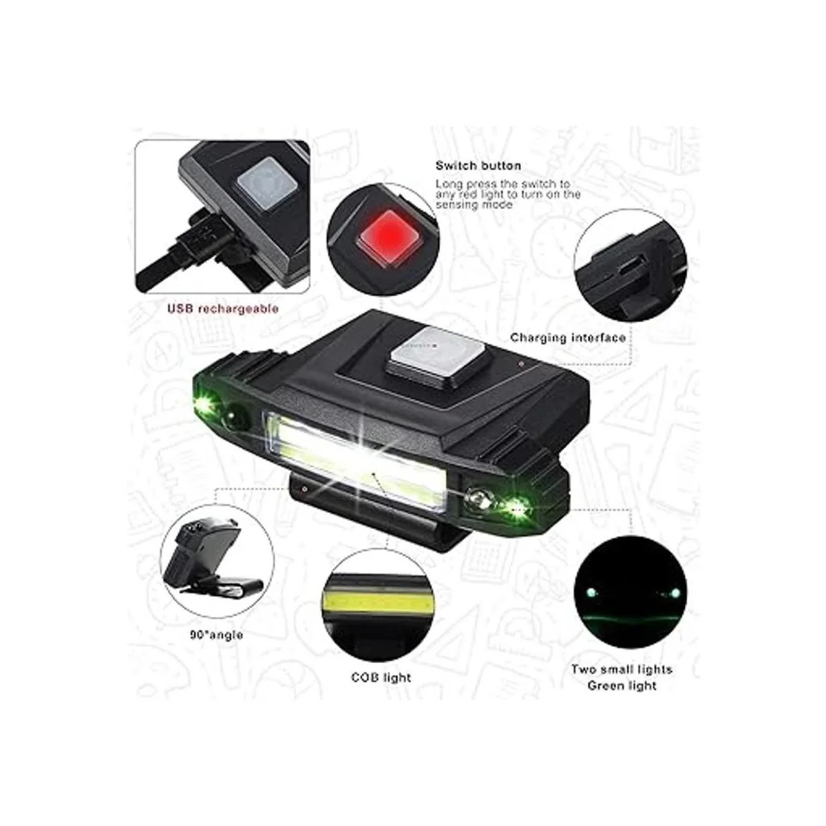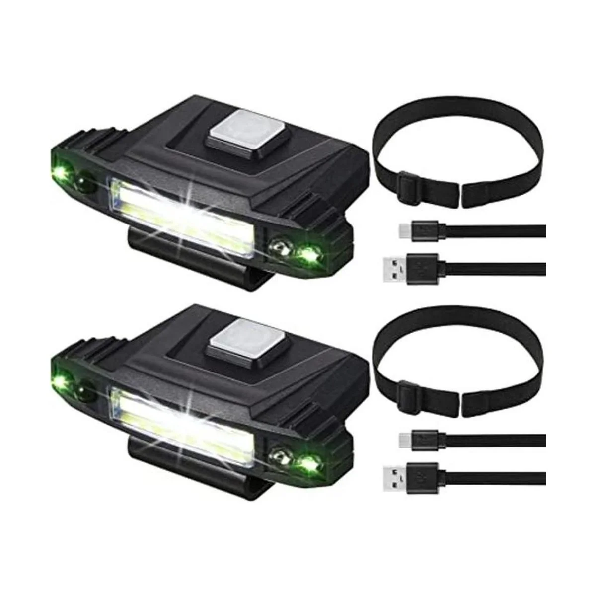 2 piezas ultra brillante mini LED clip en tapa luz recargable USB sensor de movimiento sombrero visera luz impermeable tapa linterna faro para pesca camping correr sombreros duros, cascos, 4 modos de luz