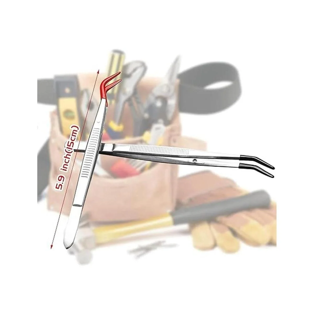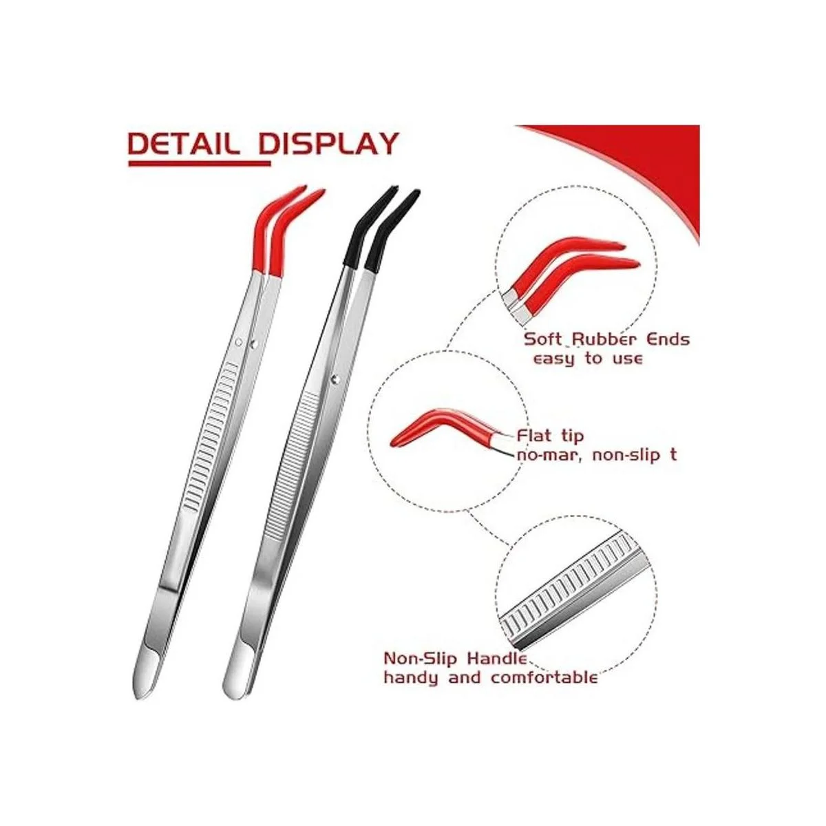 Diseño recubierto de goma: estas pinzas dobladas adoptan un diseño de punta de retención recubierta de goma, que no es fácil de deslizar ni mover, lo que te da un agarre suave sin rayar o romper objetivos delicados, mejorando la calidad y la eficiencia de tu trabajo