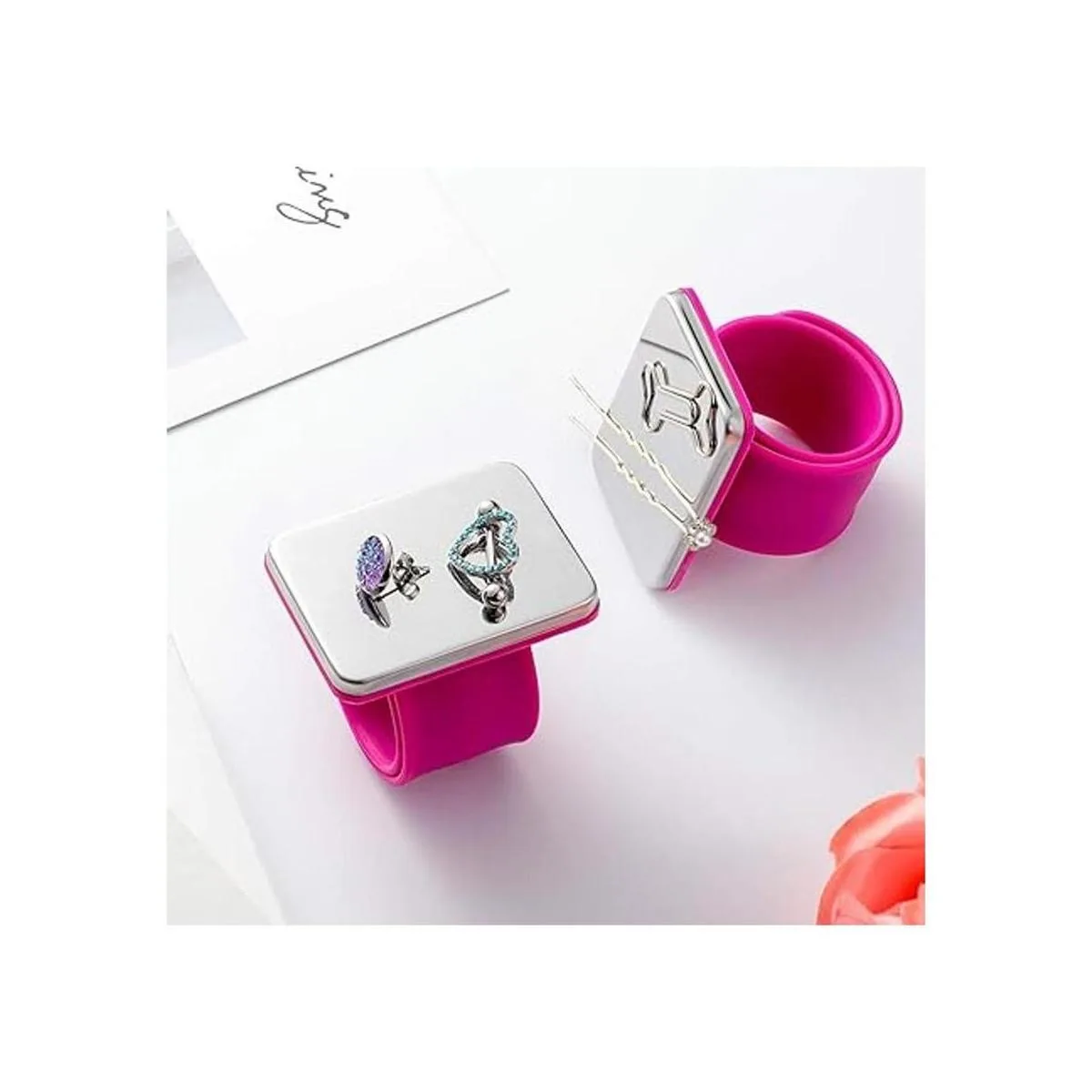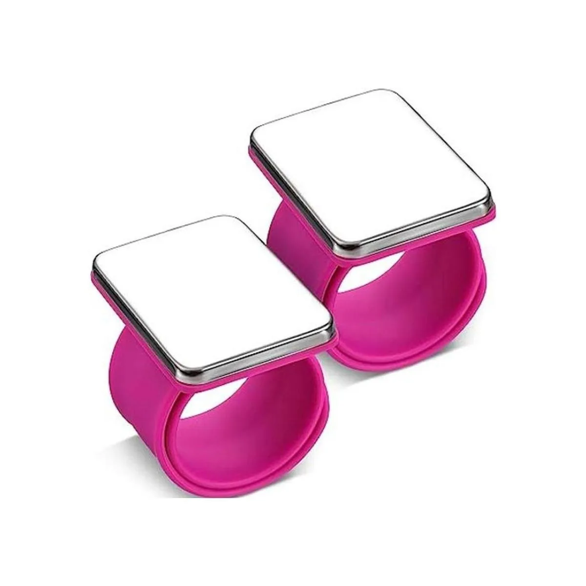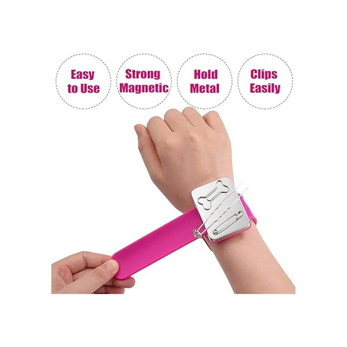 2 pinzas magnéticas para coser, soporte magnético para cojines, pinzas para el cabello con bolsa de franela, pulsera de silicona para muñeca rosa