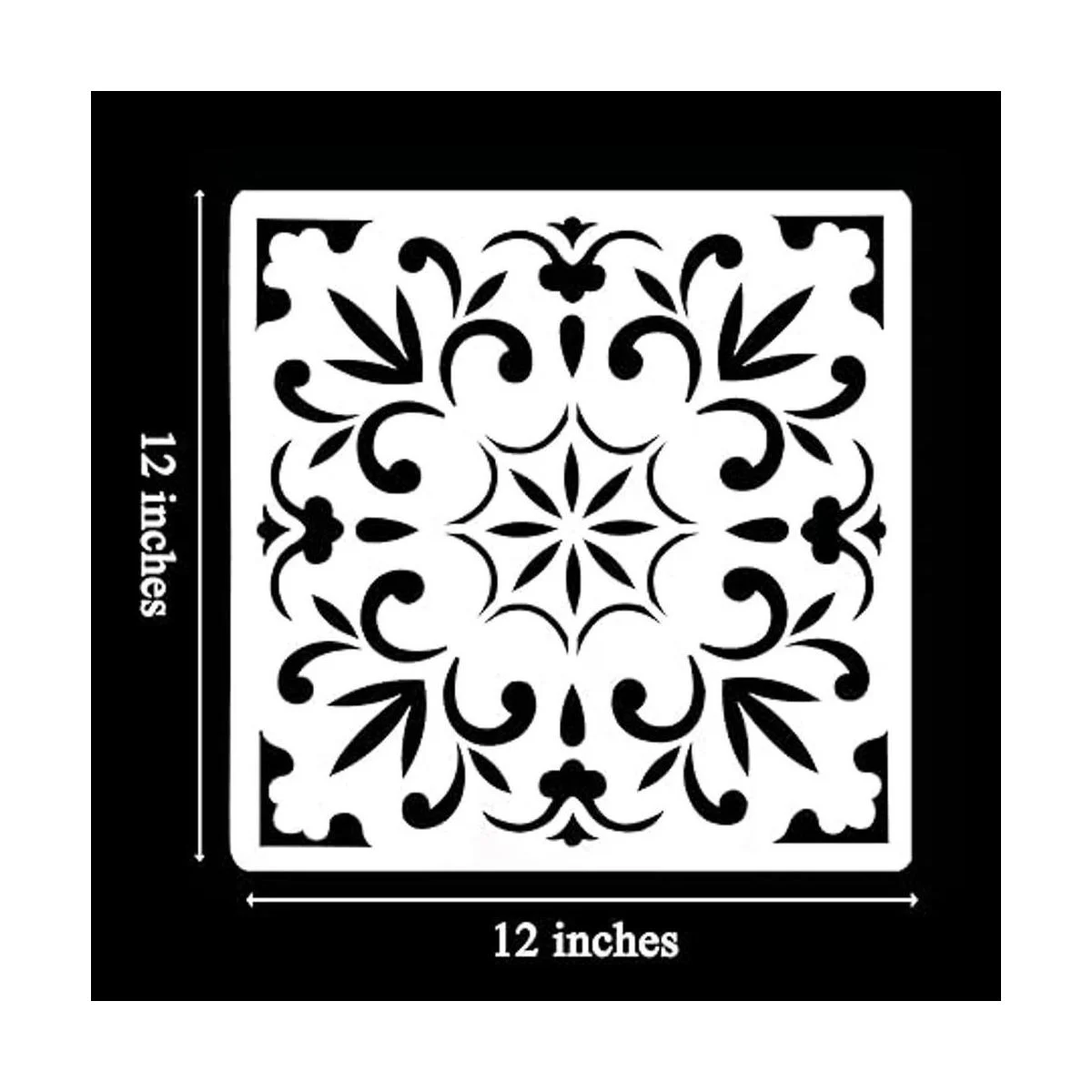 2 plantillas de pintura de mandala grande de 12 x 12 pulgadas para suelo, azulejos, pared, tela, madera y muebles, plantillas de pintura reutilizables para bricolaje, plantillas de arte y manualidades